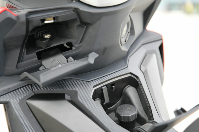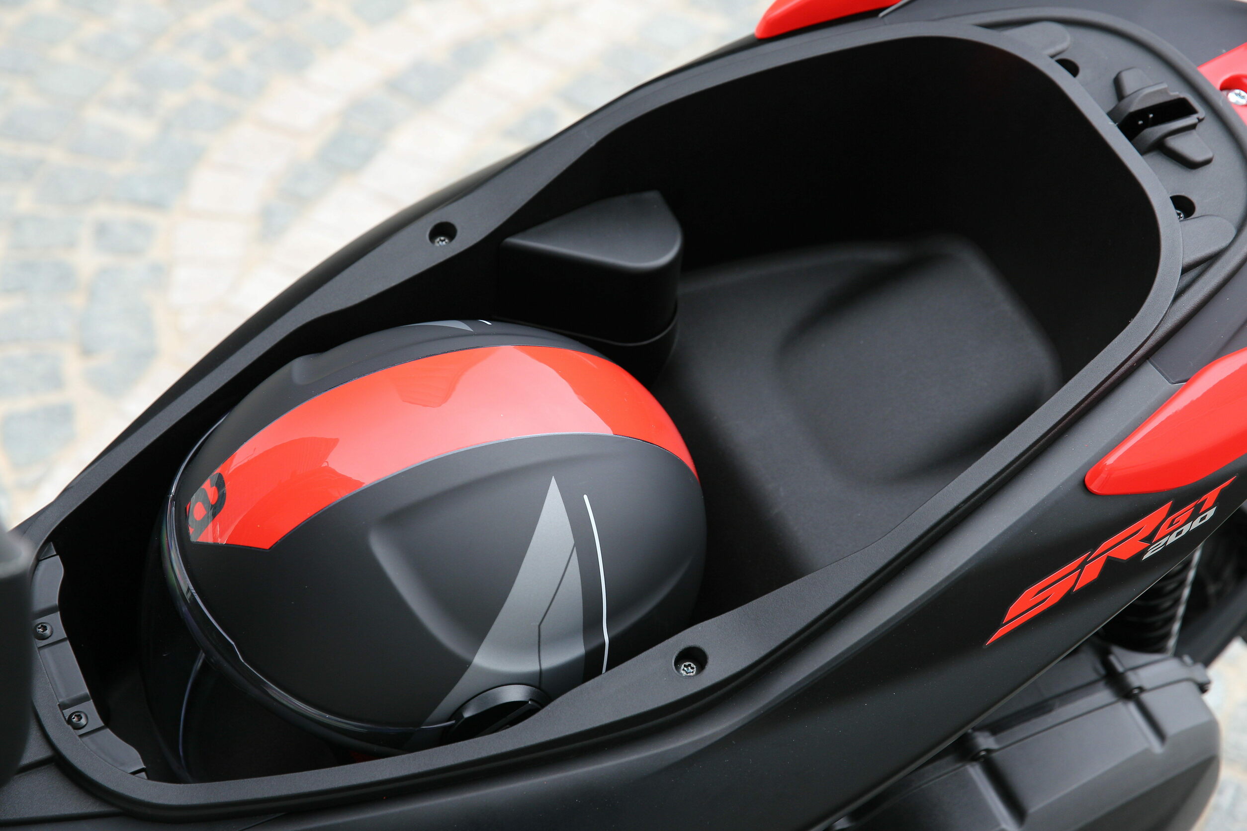 Der Stil des SR GT lädt zu Action und Spass ein, aber er ist auch perfekt für den Stadtlauf geeignet, mit einem 25-Liter-Fach im Untersitz, das einen Vollhelm aufnehmen kann. Es gibt auch einen praktischen USB-Anschluss in der Beinschutz Rückenplatte und ein fortschrittliches LCD-Dashboard. Wenn Sie das optionale Aprilia MIA extra wählen, können Sie Ihr Telefon via Bluetooth mit der Lenkersteuerung verbinden.