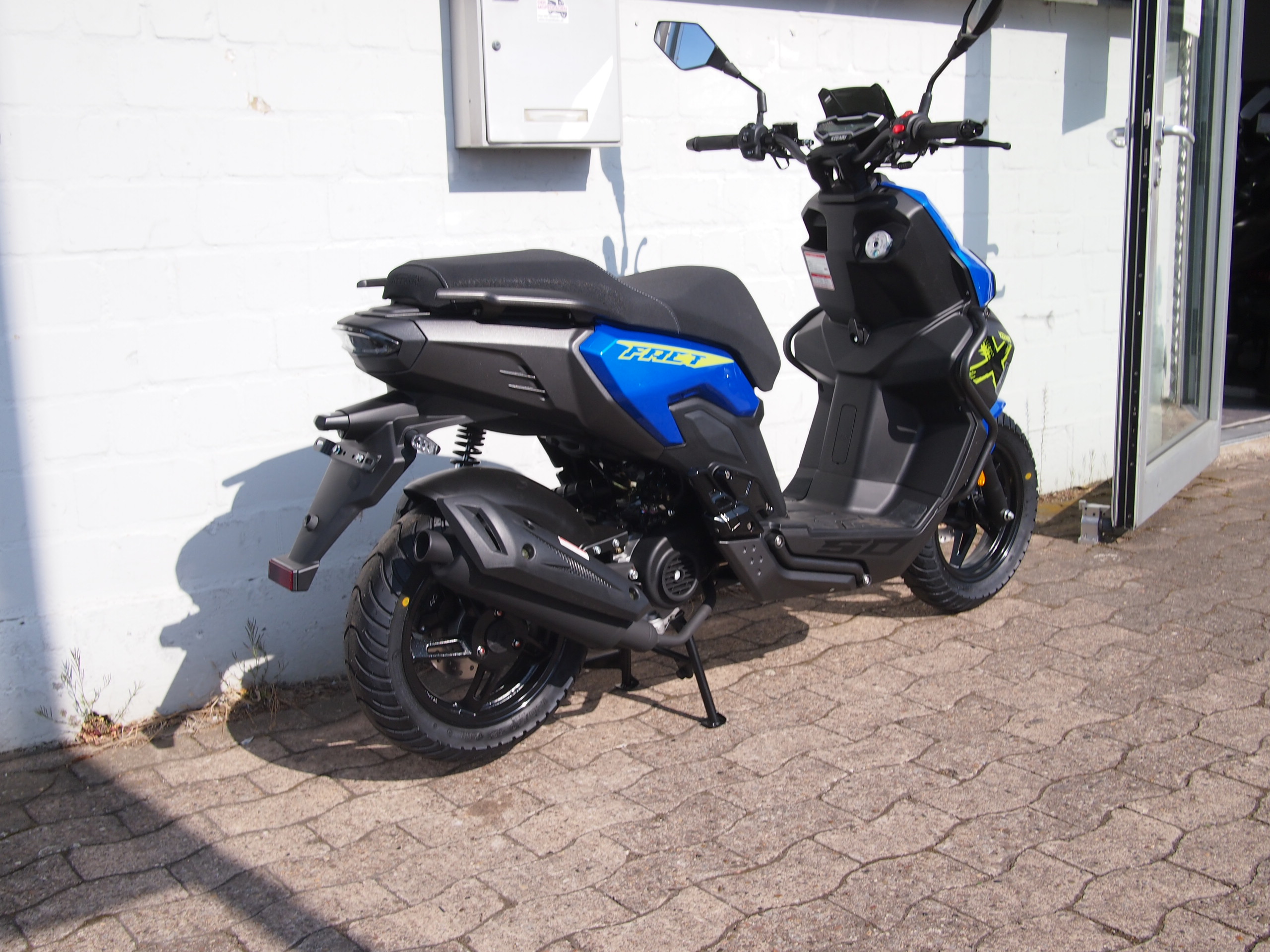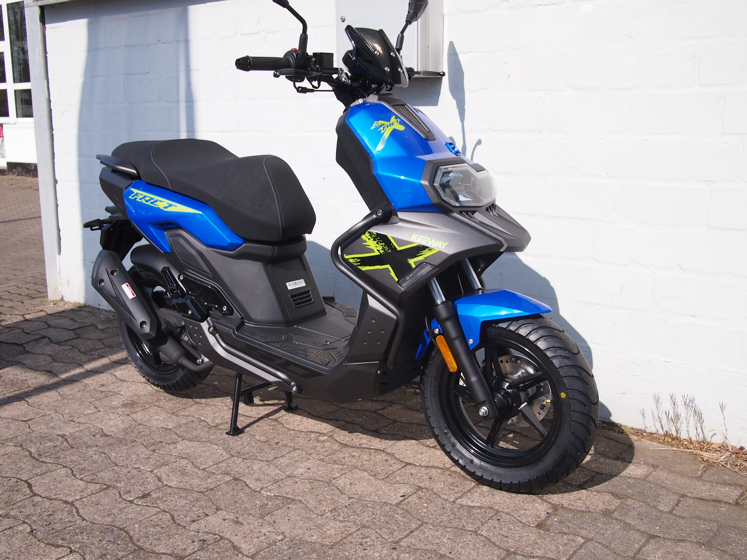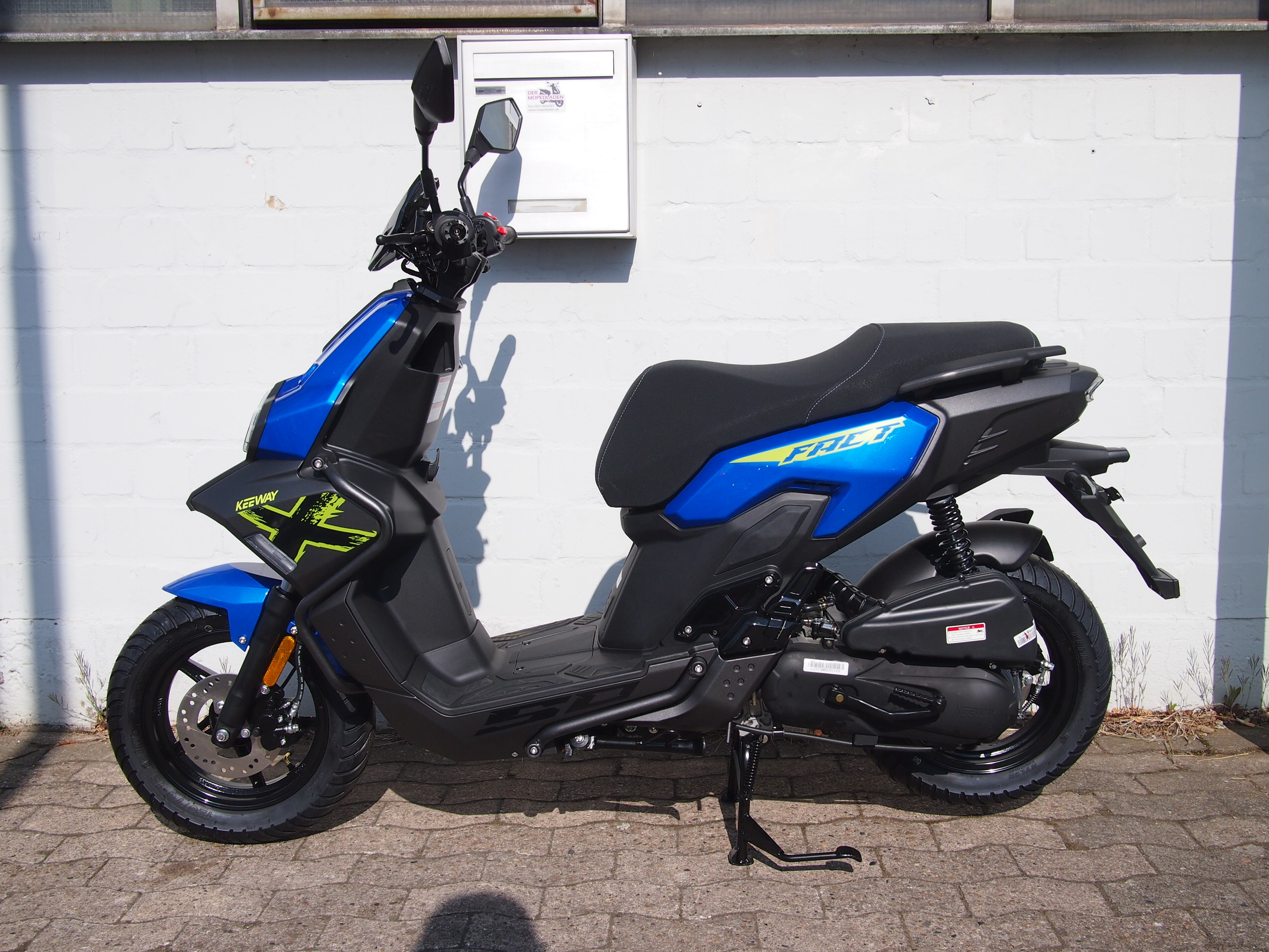 Der Keeway FACT X 50 ist ein wendiger und preiswerter 50er Roller, der nur sehr wenig Benzin verbraucht. Auch das Startverhalten ist aus demselben Grund äusserst unproblematisch. Der Roller bietet ausreichend Platz für 2 Personen und ist mit einem Gepäckträger versehen, auf den direkt ein Topcase montiert werden kann. Das Helmfach fasst einen Helm und mit seiner kompletten LED Beleuchtung ist der Keeway FACT X 50 auf der Höhe der Zeit.
