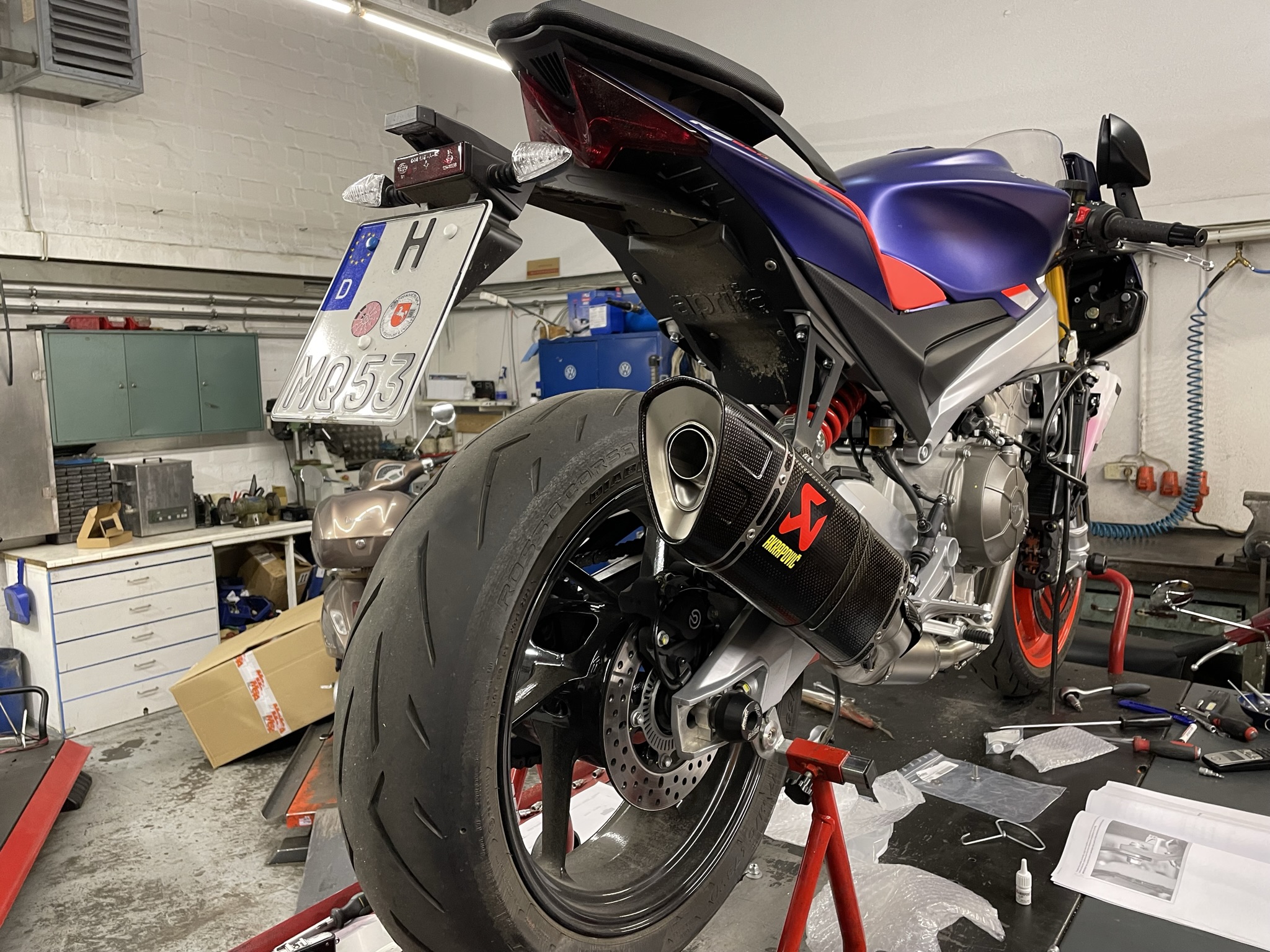 Nach erfolgtem Umbau sollte man eigentlich das von Aprilia angebotene Akrapovic-Mapping aufspielen, hier schiebt man seitens Aprilia jedoch einen Riegel vor: Das Mapping kann nur aufgespielt werden, wenn die Anlage auch bei Aprilia gekauft wird. Leider ist sie dort fast doppelt so teuer wie im freien Handel und das haben wir dann auch nicht eingesehen. Daher muss unsere RS 660 jetzt weiter mit dem Standardmapping auskommen.