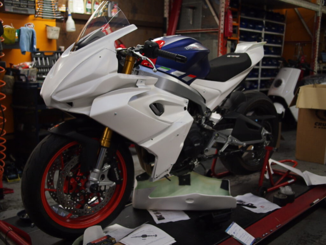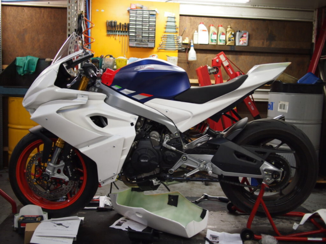 Die zweite große Aufgabe ist die Anpassung der Cruciata Rennverkleidung die wir über WSC-Neuss bezogen haben. Die Cruciata Verkleidung ist auch an der RS 660 Trofeo montiert, daher hatten wir die Hoffnung, dass sie relativ gut passen würde.