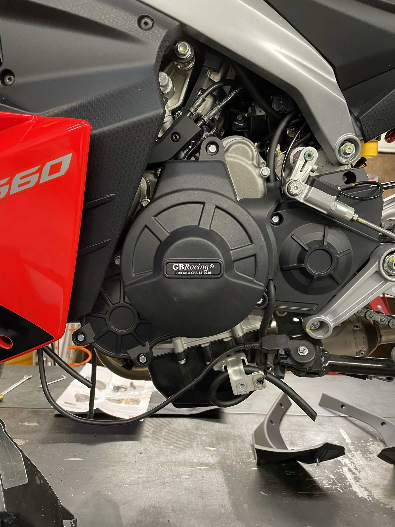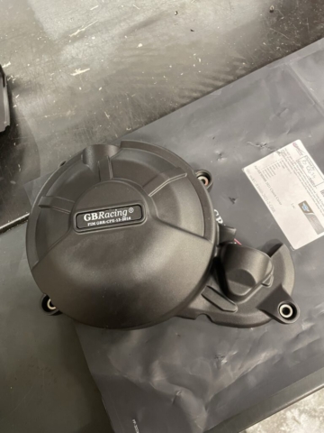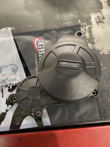 Zunächst haben wir auf der Lichtmaschinenseite die Abdeckung von GBRacing verbaut.