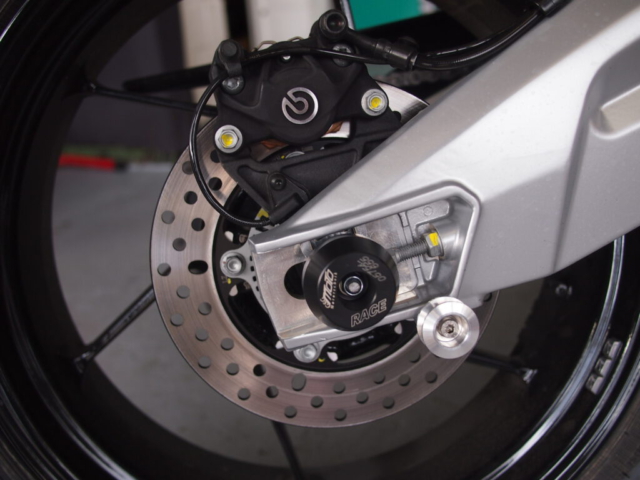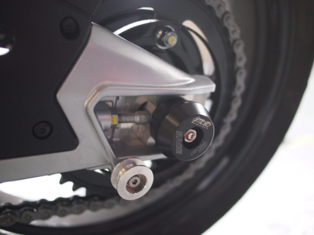 Auch die Radachsen wurden mit durchgeschraubten Sturzpads von GSG-Mototechnik geschützt: