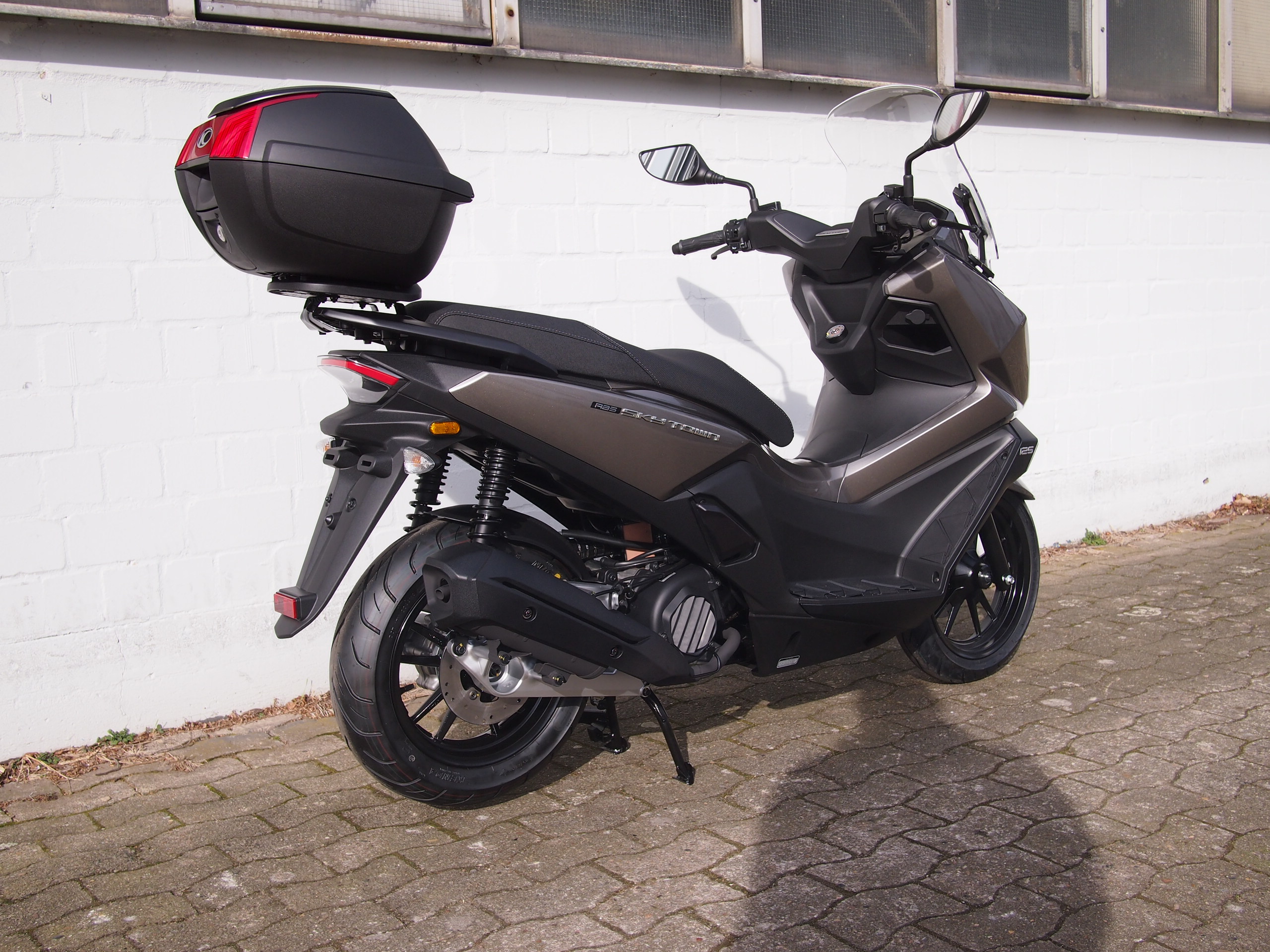 Das ABS Bremssystem von Bosch und die automatisch aktivierten LED-Lichter bieten zusätzliche Sicherheit im Stadtverkehr, während das Windschild den Fahrkomfort verbessert. Der praktische Stauraum unter der Sitzbank bietet Platz für einen Integralhelm und das serienmäßige Topcase erhöht die Kapazität weiter. Ein USB-Anschluss (Typ A & C) hält mobile Geräte geladen, während das LCD-Dashboard jederzeit klare Sicht auf alle wichtigen Infos bietet.