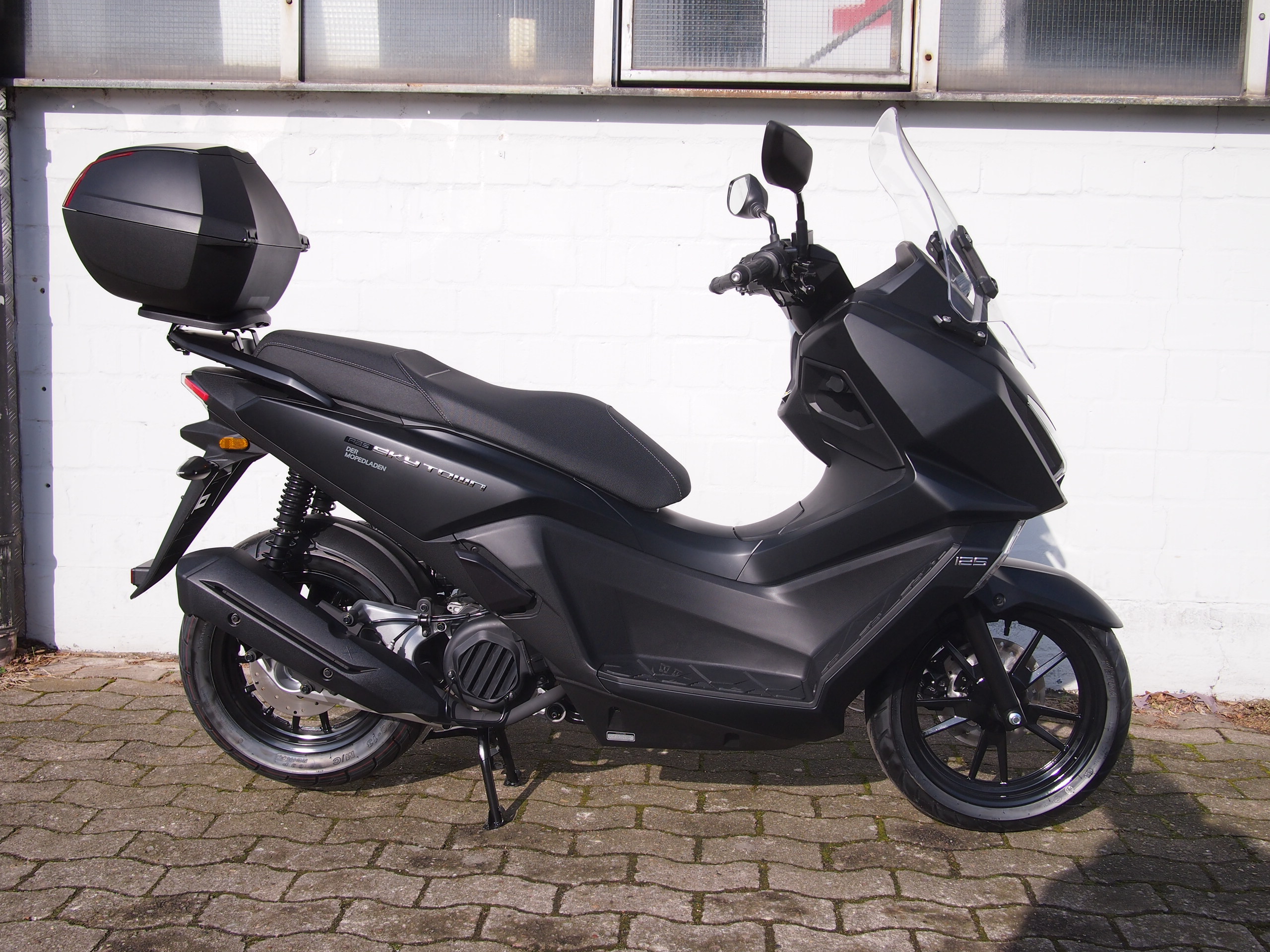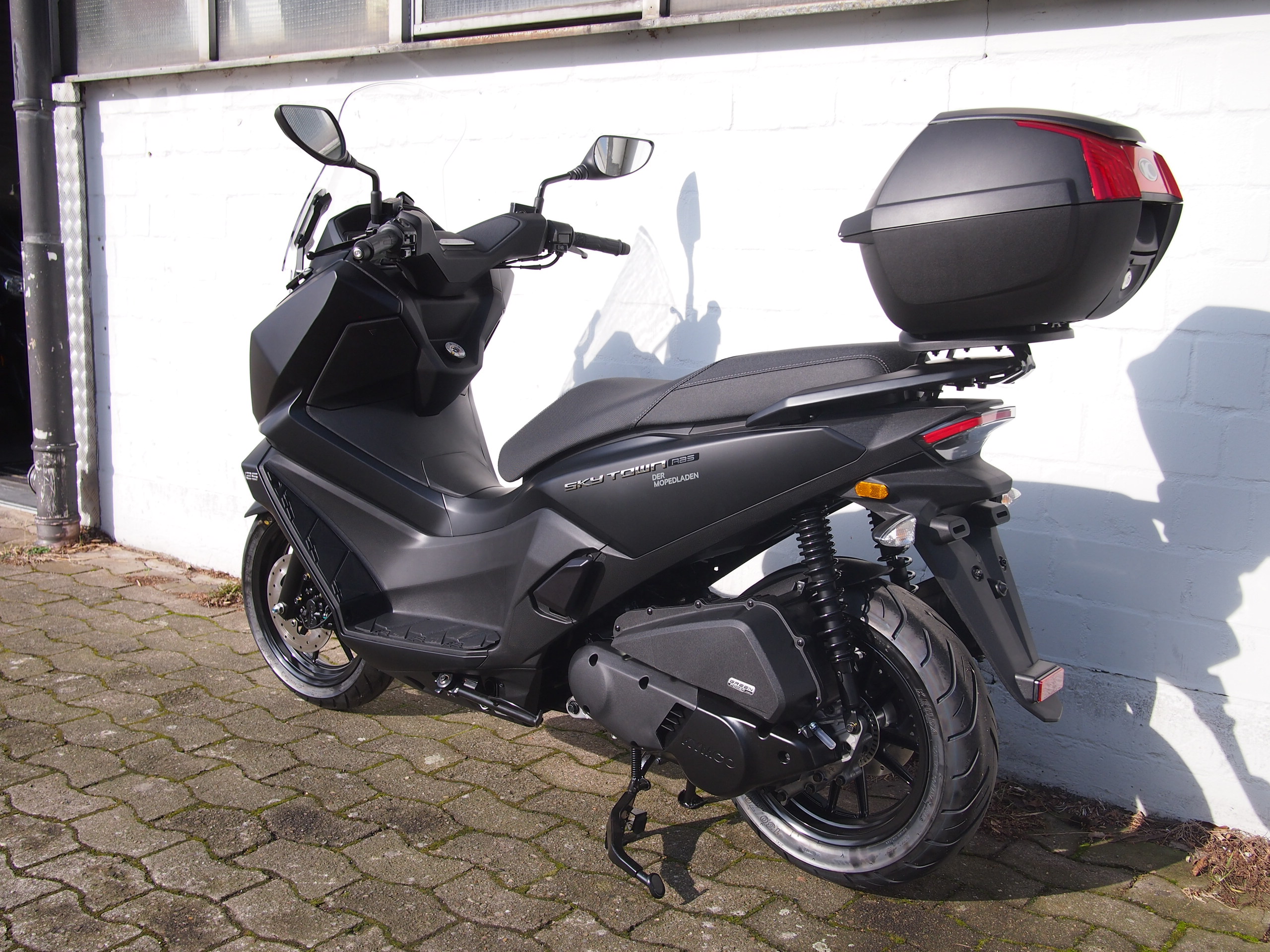 Der SKY TOWN 125i ABS ist die perfekte Wahl für alle, die einen agilen, nachhaltigen Scooter für den urbanen Alltag suchen. Dank Euro5+ Standard und einem Verbrauch von nur 2,5 Litern auf 100 km ist dieser der Roller besonders sparsam und emissionsarm.