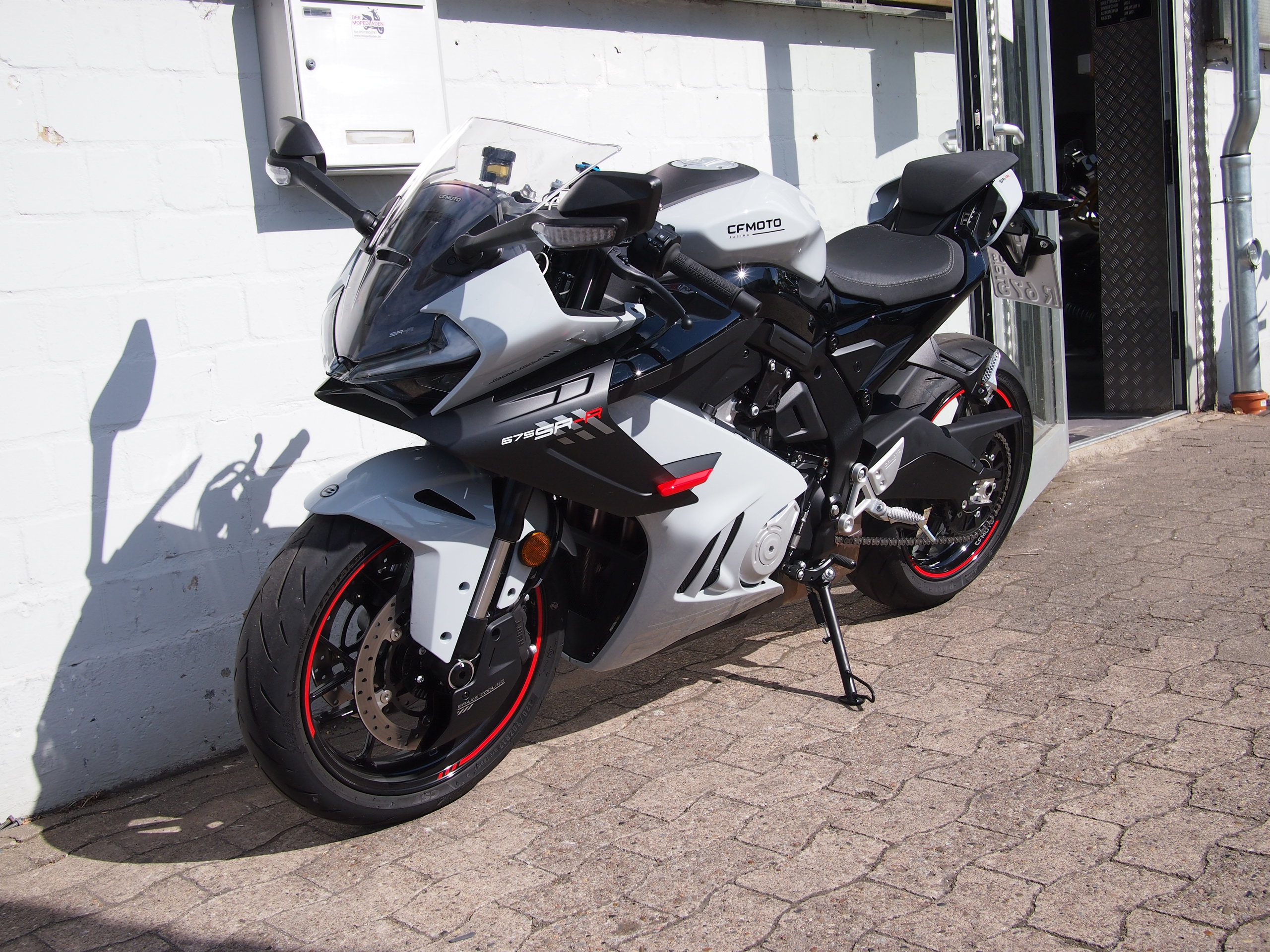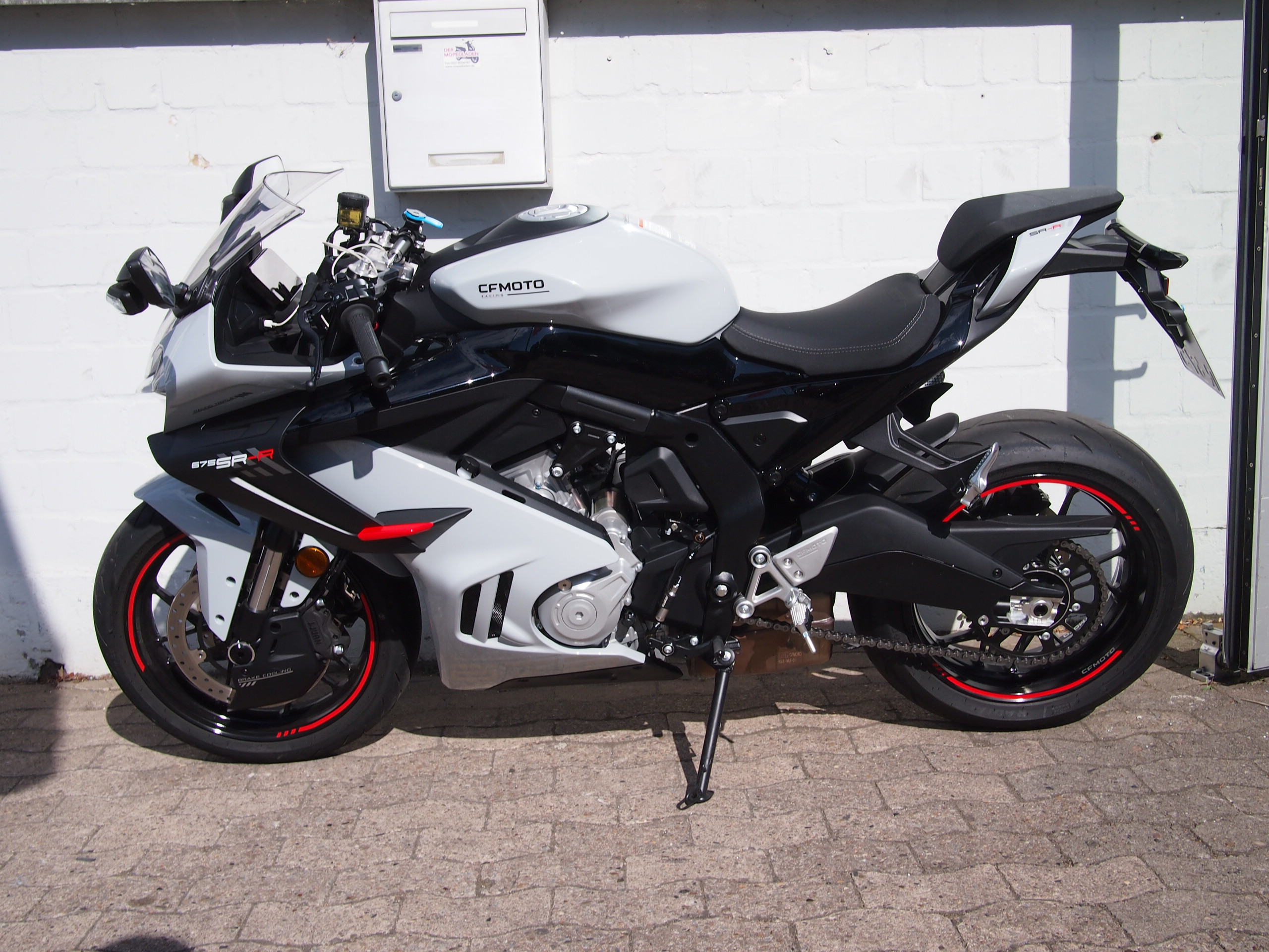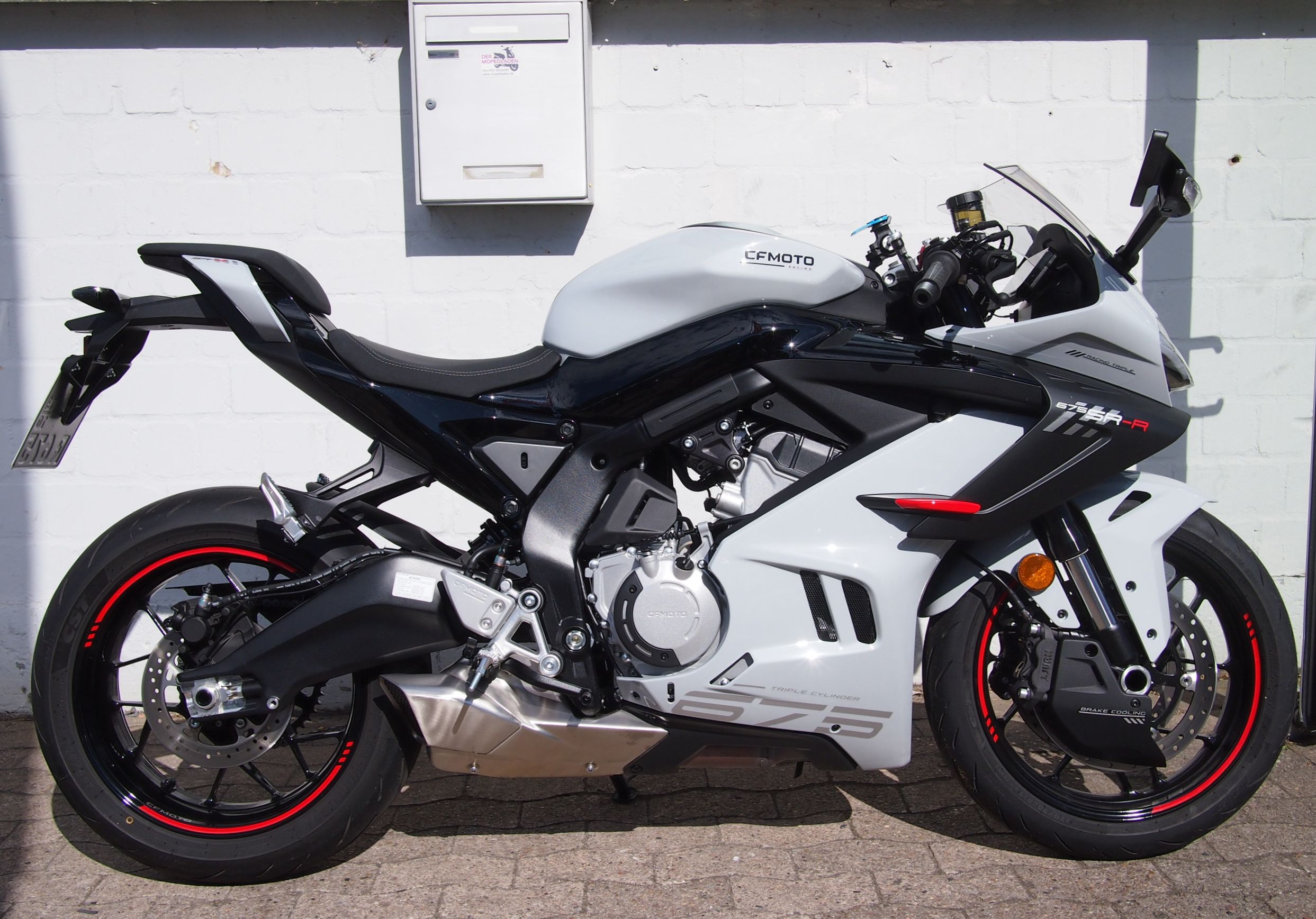Die CFMOTO 675SR-R ist das sportliche Motorrad für puren Fahrspaß, angetrieben von einem leistungsstarken Dreizylindermotor für eine aufregende Fahrt.