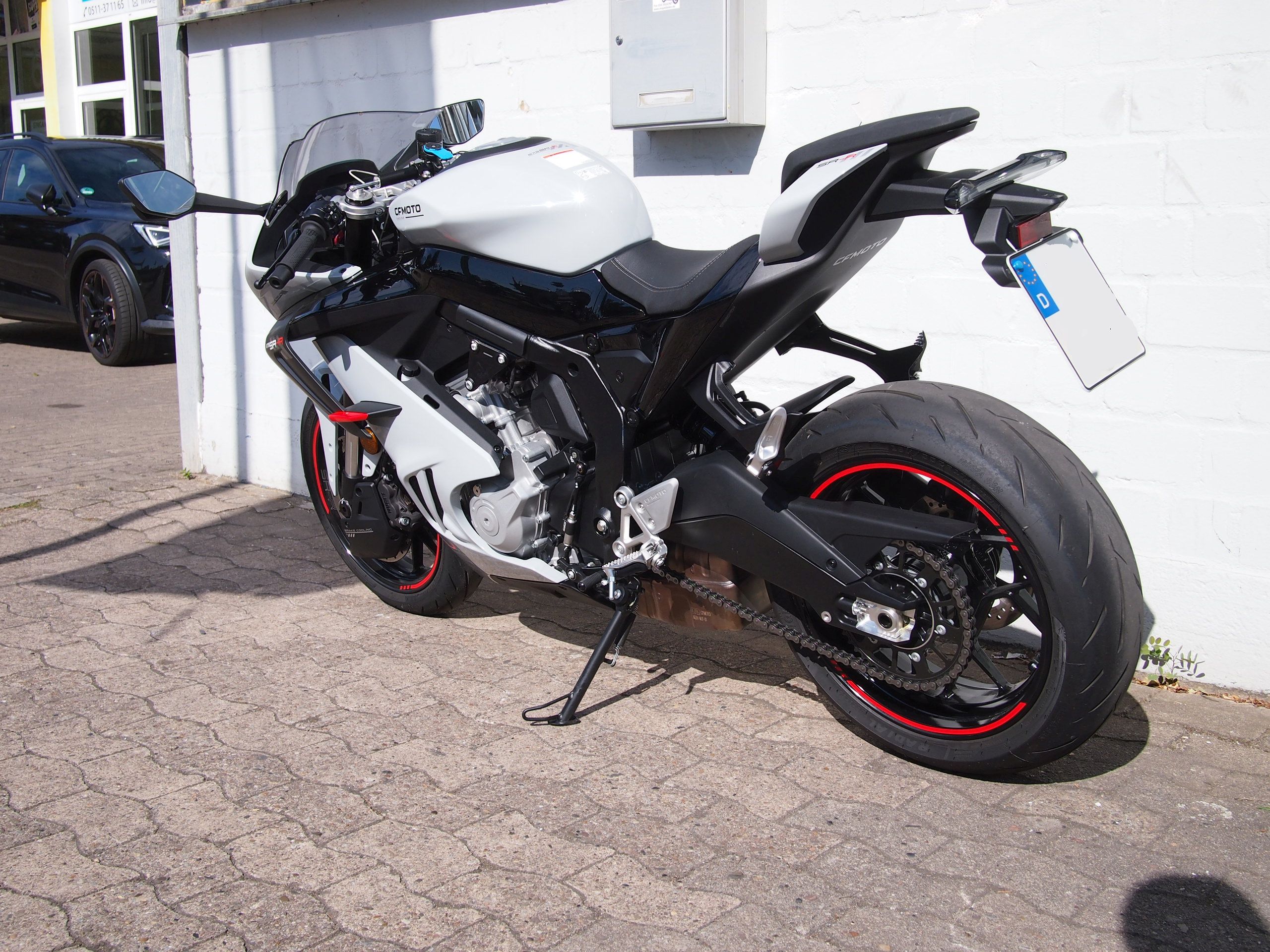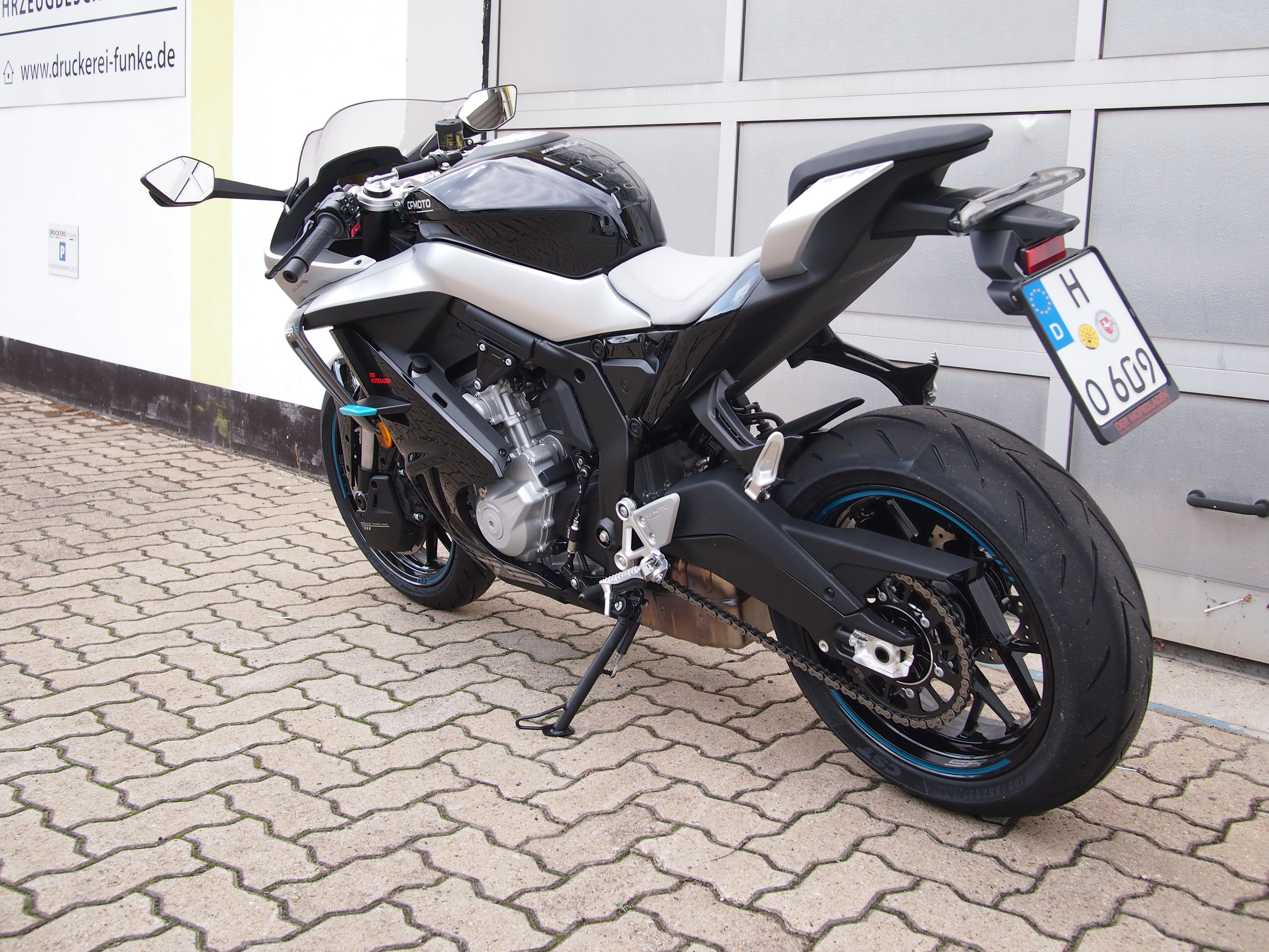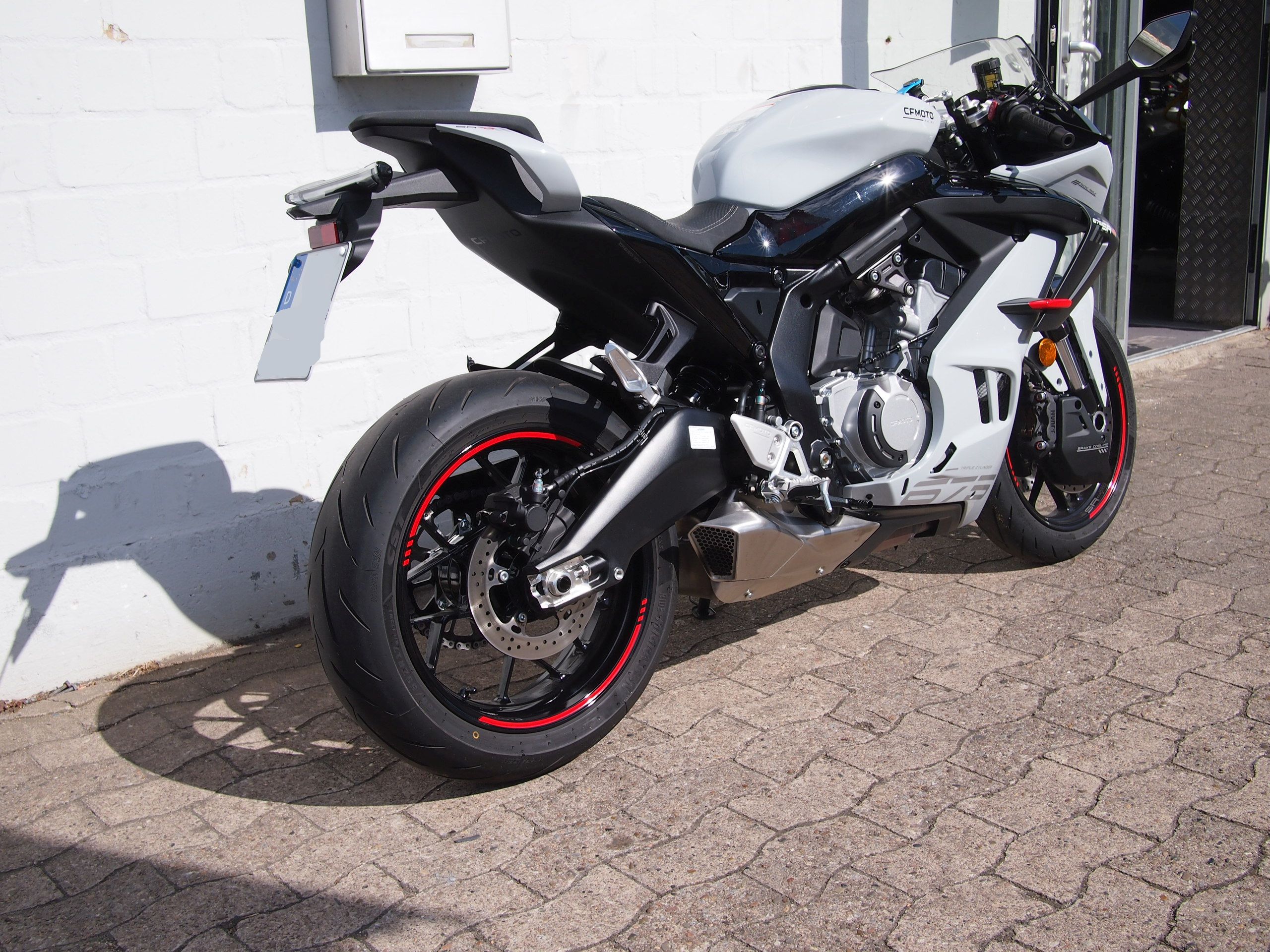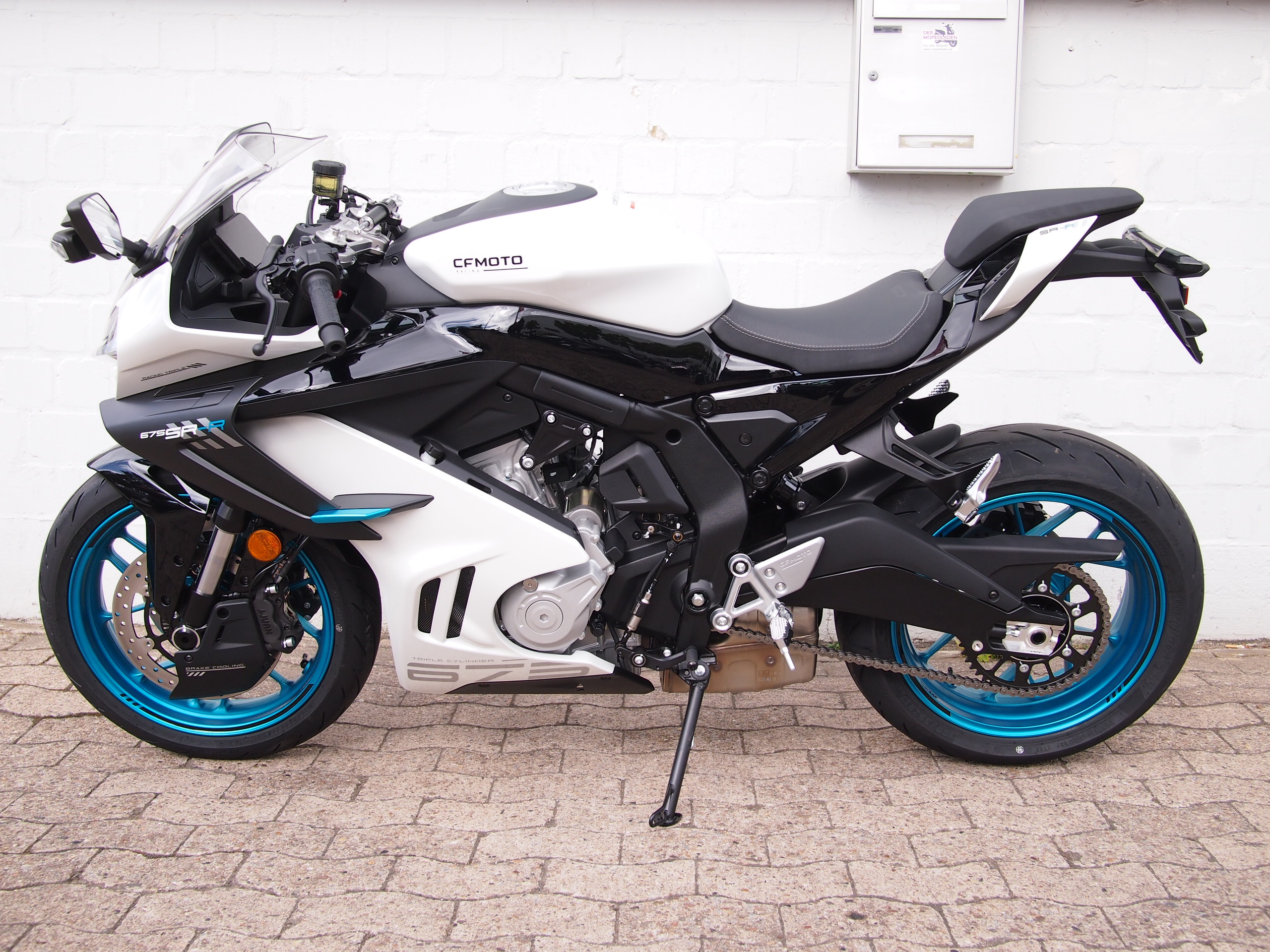 Die CFMOTO 675SR-R ist das sportliche Motorrad für puren Fahrspaß, angetrieben von einem leistungsstarken Dreizylindermotor für eine aufregende Fahrt.