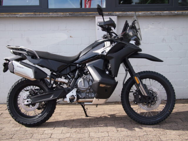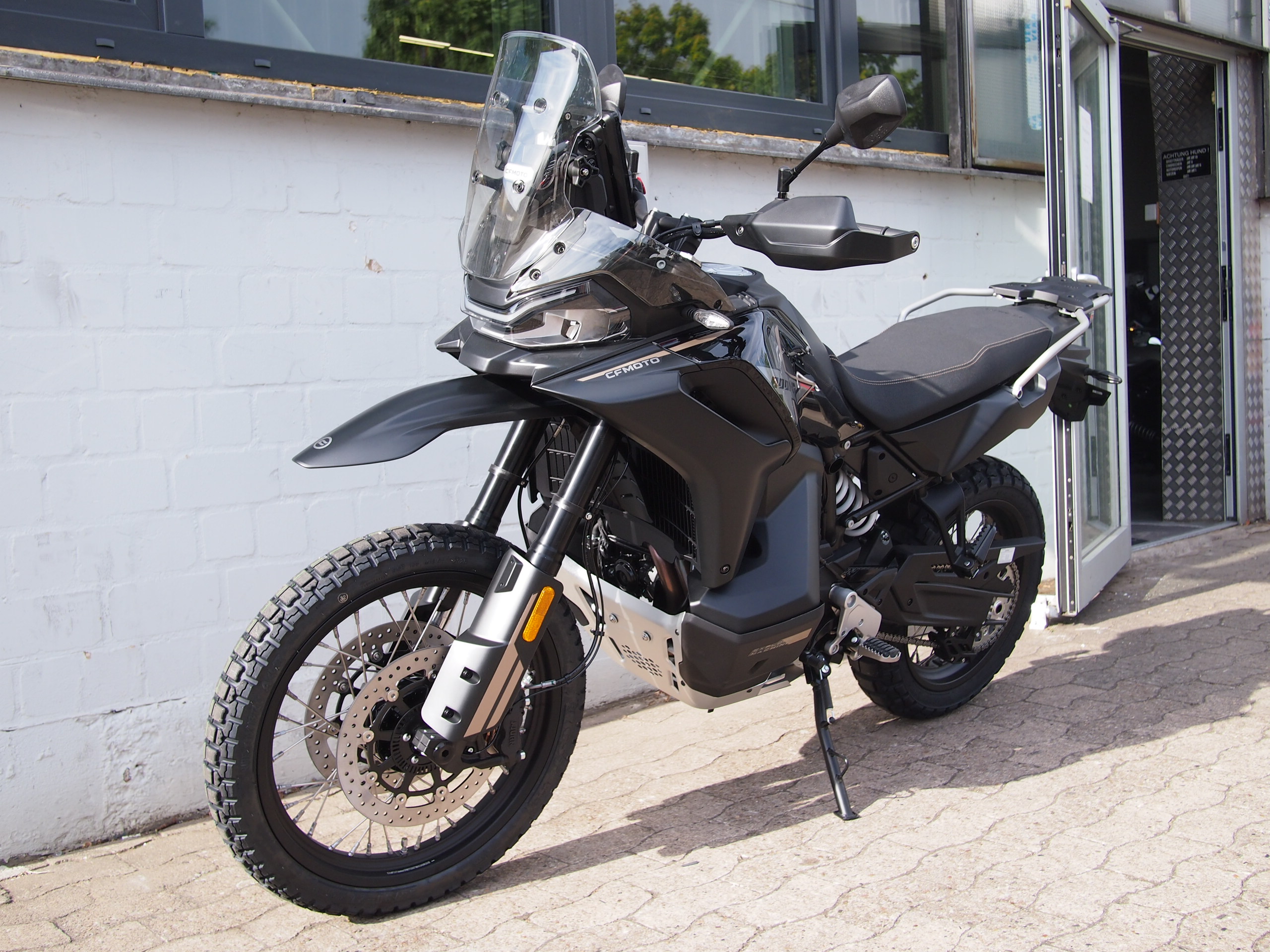 Optional zum Schnäppchenpreis erhältlich: 2 Koffer + Topcase schwarz in massiver Alu-Ausführung für nur 899 € statt 1599 €. Benötigt wird zusätzlich der CFMOTO Kofferträger für 99 €.