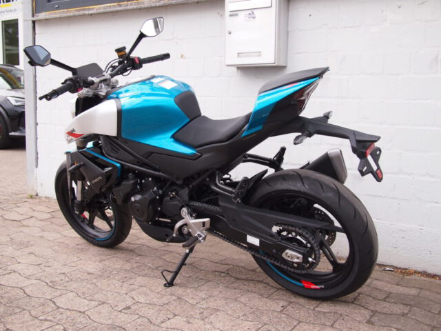 Wir haben noch eine CFMOTO 450NK in Zephyr blue mit Tageszulassung zum Sonderpreis!