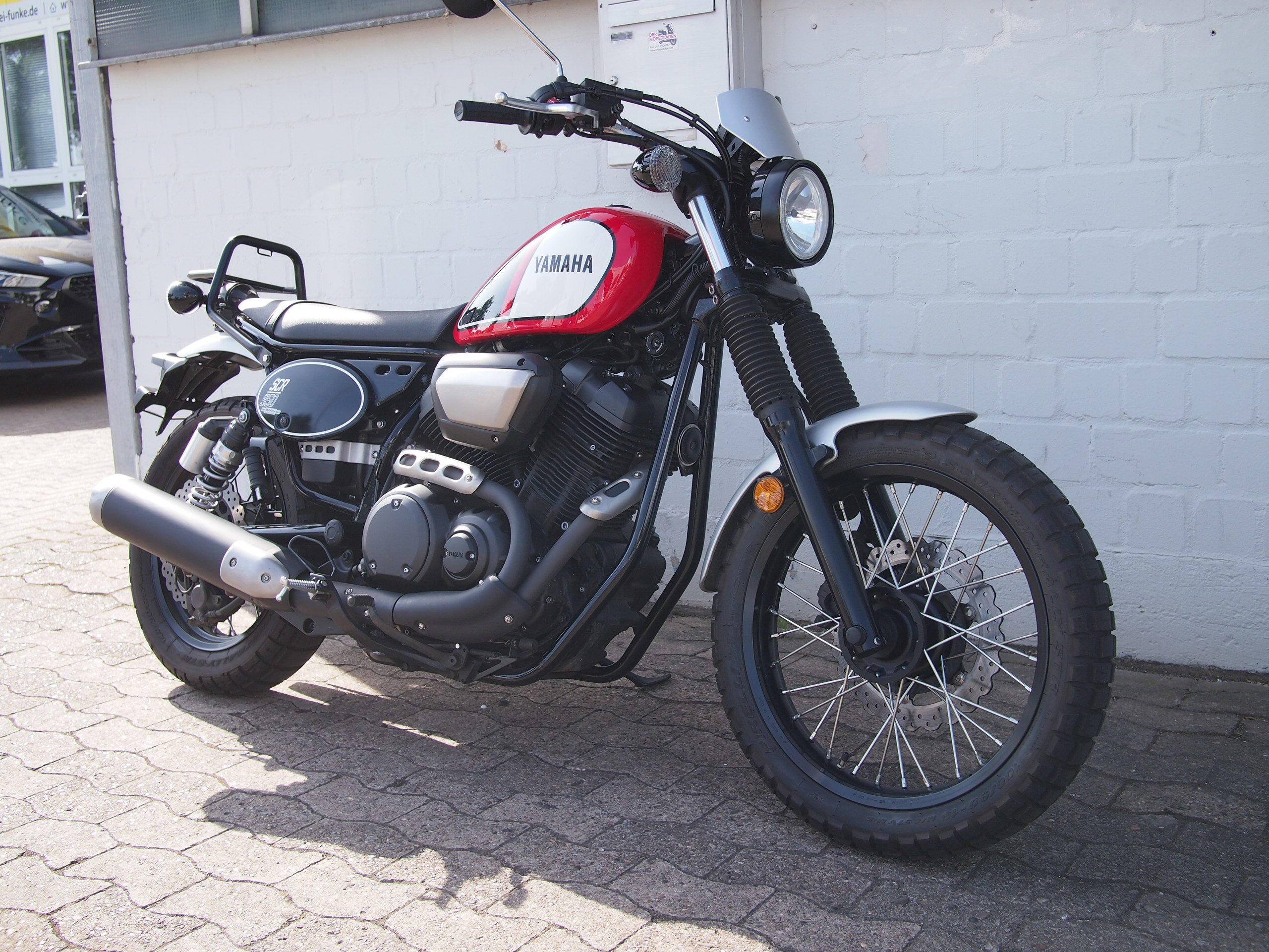 Unsere Yamaha SCR 950 ist aus 2. Hand und hat vor 2 Jahren und rund 1800km eine frische Pirelli STR-Bereifung bekommen. Die SCR 950 ist ein schöner Scrambler zum entspannten Cruisen mit viel Drehmoment aus dem Keller.