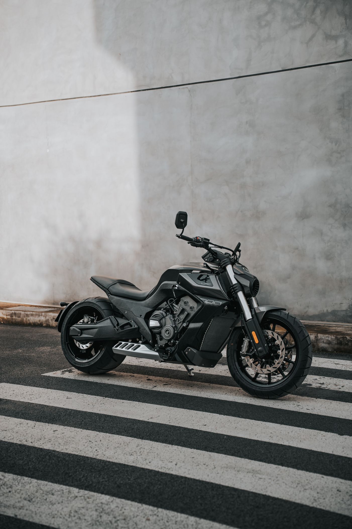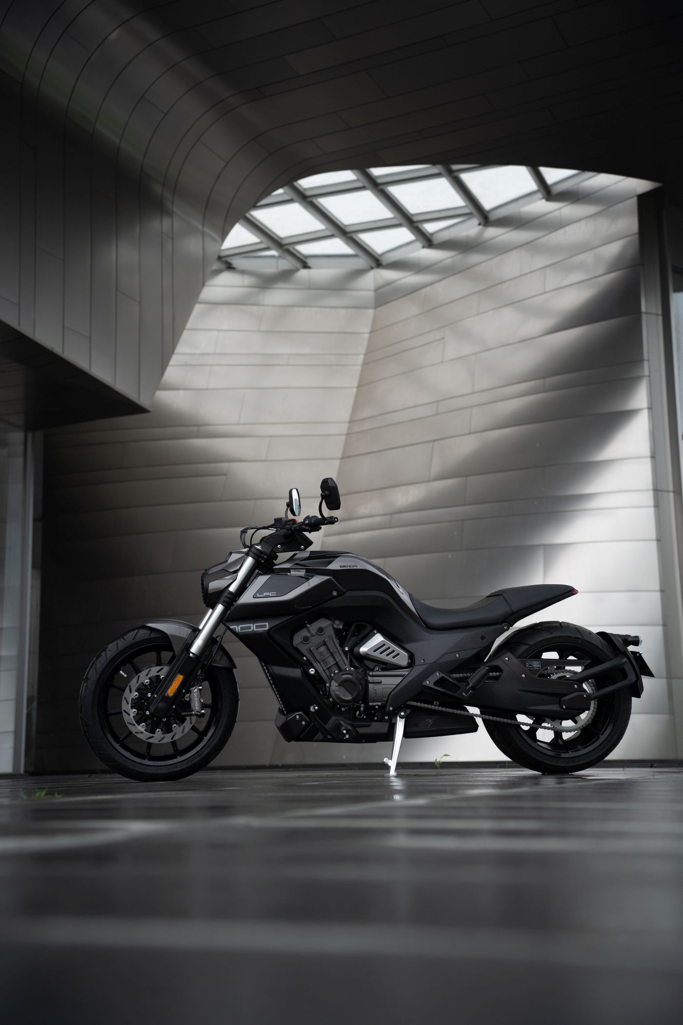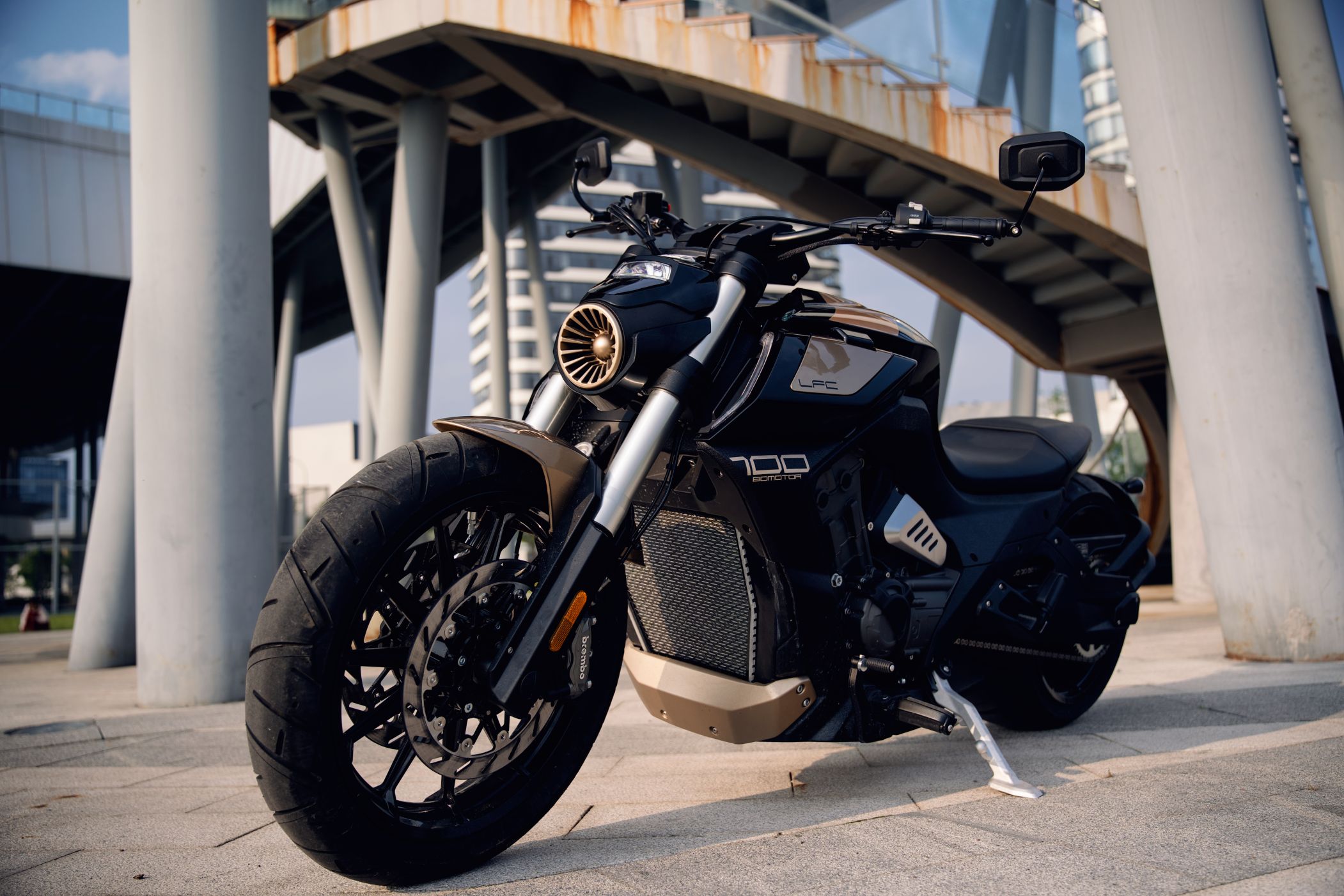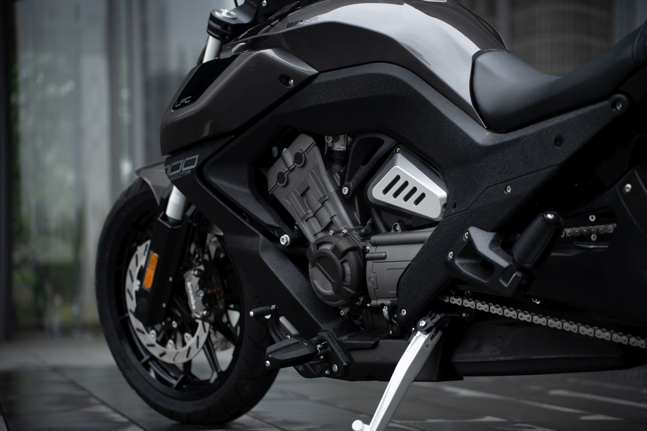 Die Benda LFC 700 pro ist ein Eyecatcher ohnegleichen: Ultrafetter 300er Schlappen hinten, und 4-Zylinderpower gepaart mit einer Brembobremsanlage, die sich auch an Sportmotorrädern gut machen würde. Das macht Eindruck und definiert den Powercruiser neu! Im Vergleich zur „normalen“ LFC kommt die Pro-Variante mit höhenverstellbarem Luftfahrwerk hinten und dem 300er Hinterradreifen. Außerdem ist der Kühler größer, der Auspuff leicht geändert und die berühmten Zusatzscheinwerfer sind zwar verbaut, jedoch nicht funktionsfähig.
