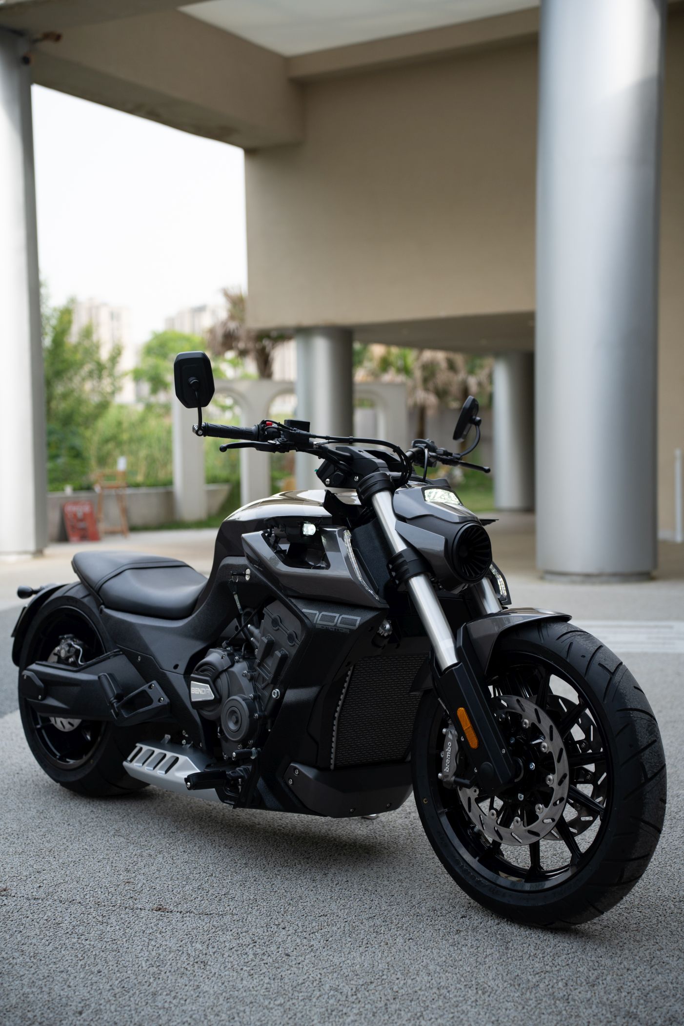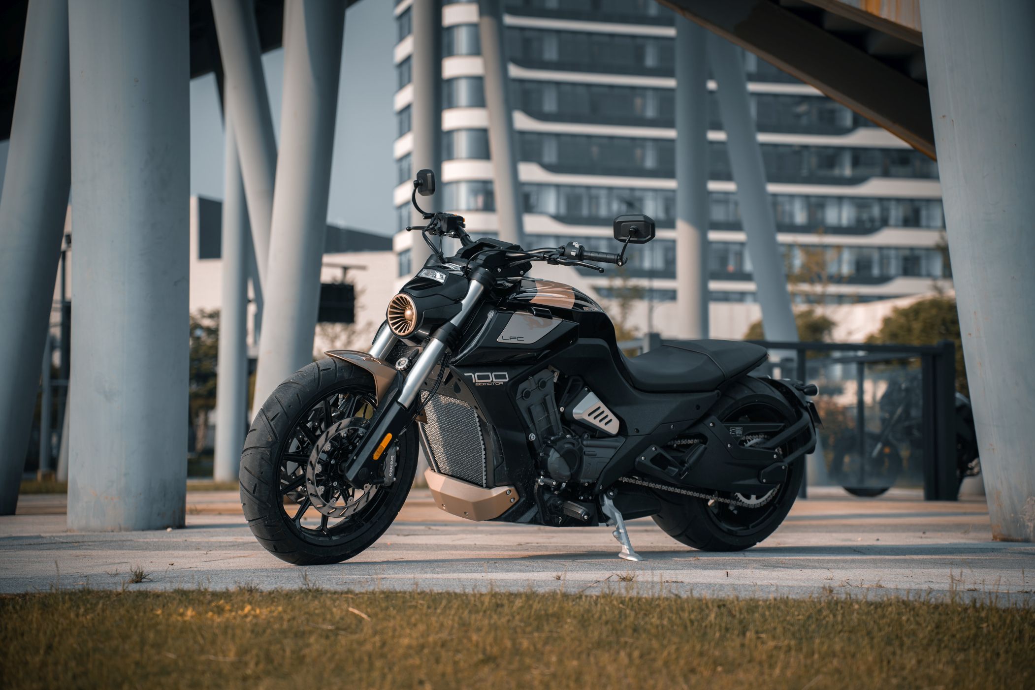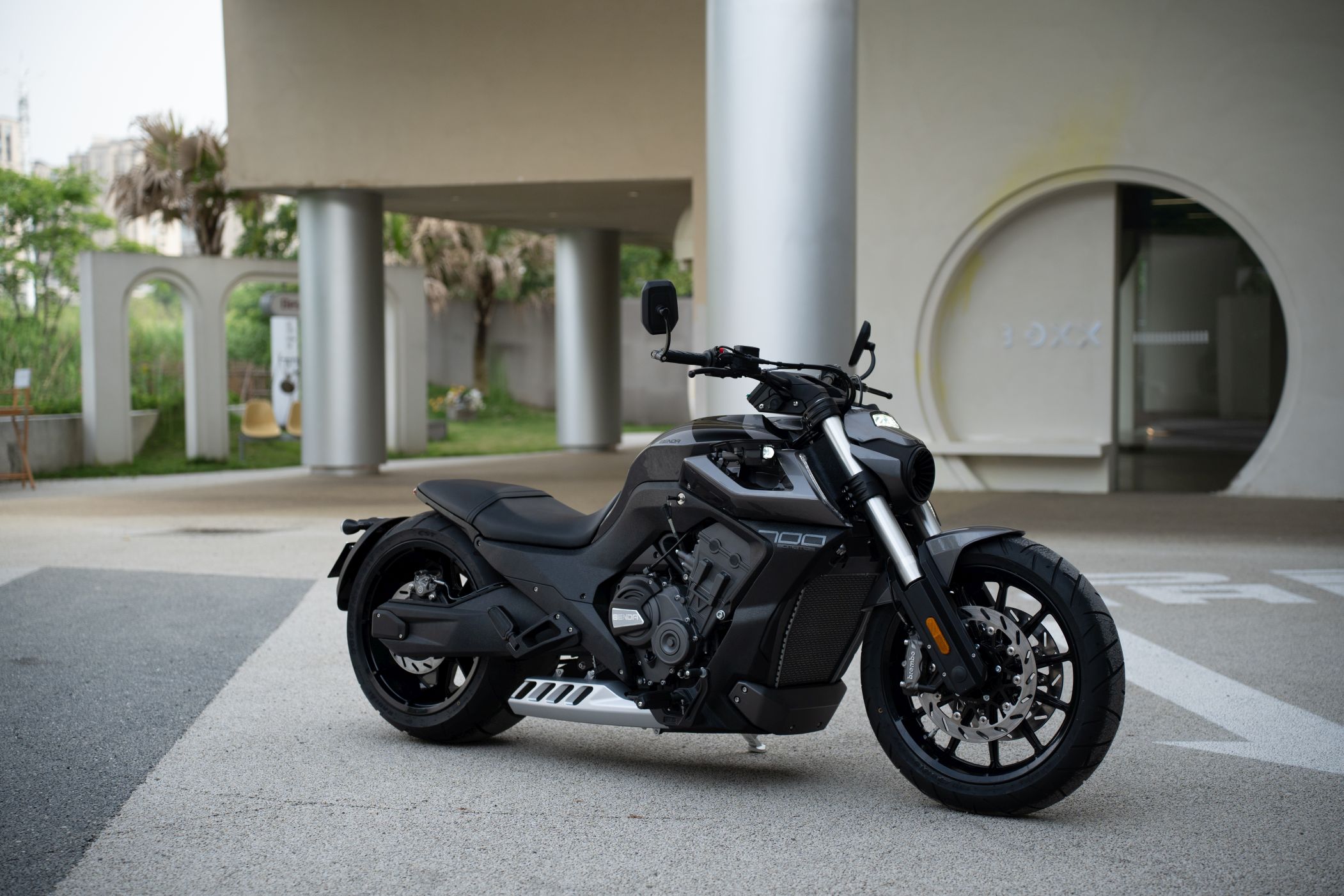 Die Benda LFC 700 pro ist ein Eyecatcher ohnegleichen: Ultrafetter 300er Schlappen hinten, und 4-Zylinderpower gepaart mit einer Brembobremsanlage, die sich auch an Sportmotorrädern gut machen würde. Das macht Eindruck und definiert den Powercruiser neu! Im Vergleich zur „normalen“ LFC kommt die Pro-Variante mit höhenverstellbarem Luftfahrwerk hinten und dem 300er Hinterradreifen. Außerdem ist der Kühler größer, der Auspuff leicht geändert und die berühmten Zusatzscheinwerfer sind zwar verbaut, jedoch nicht funktionsfähig.