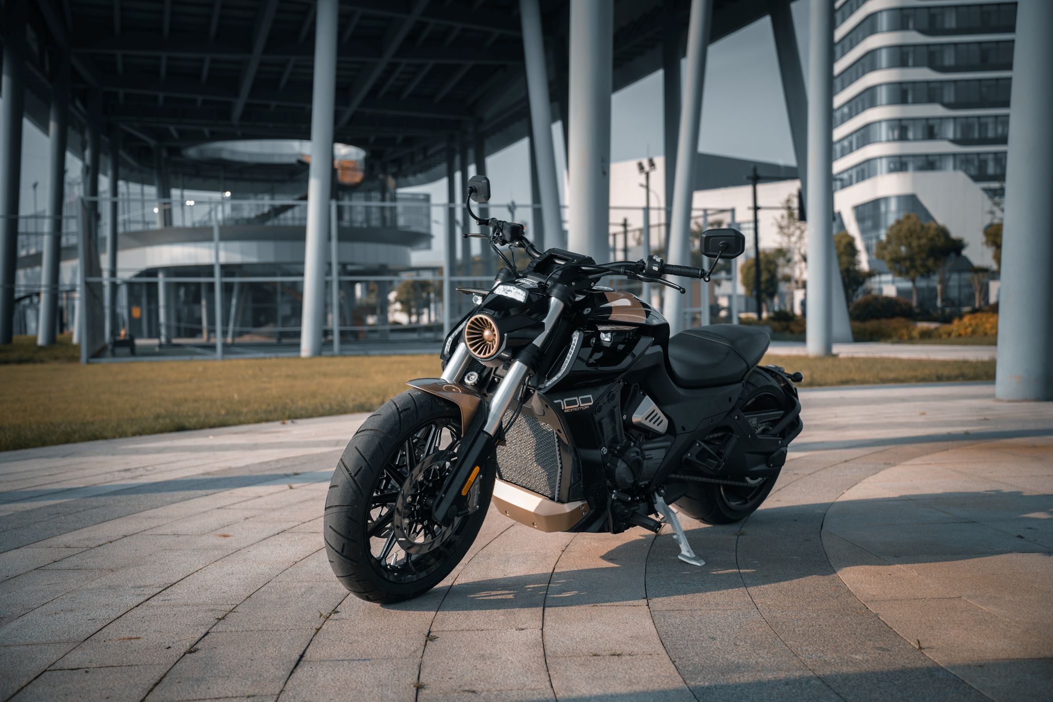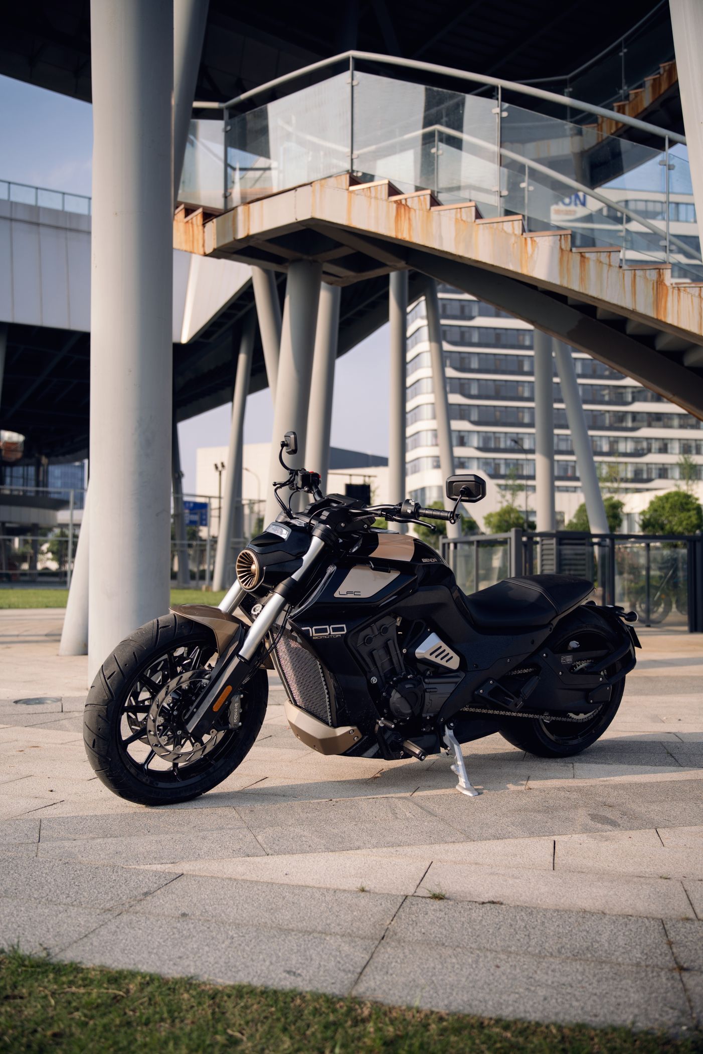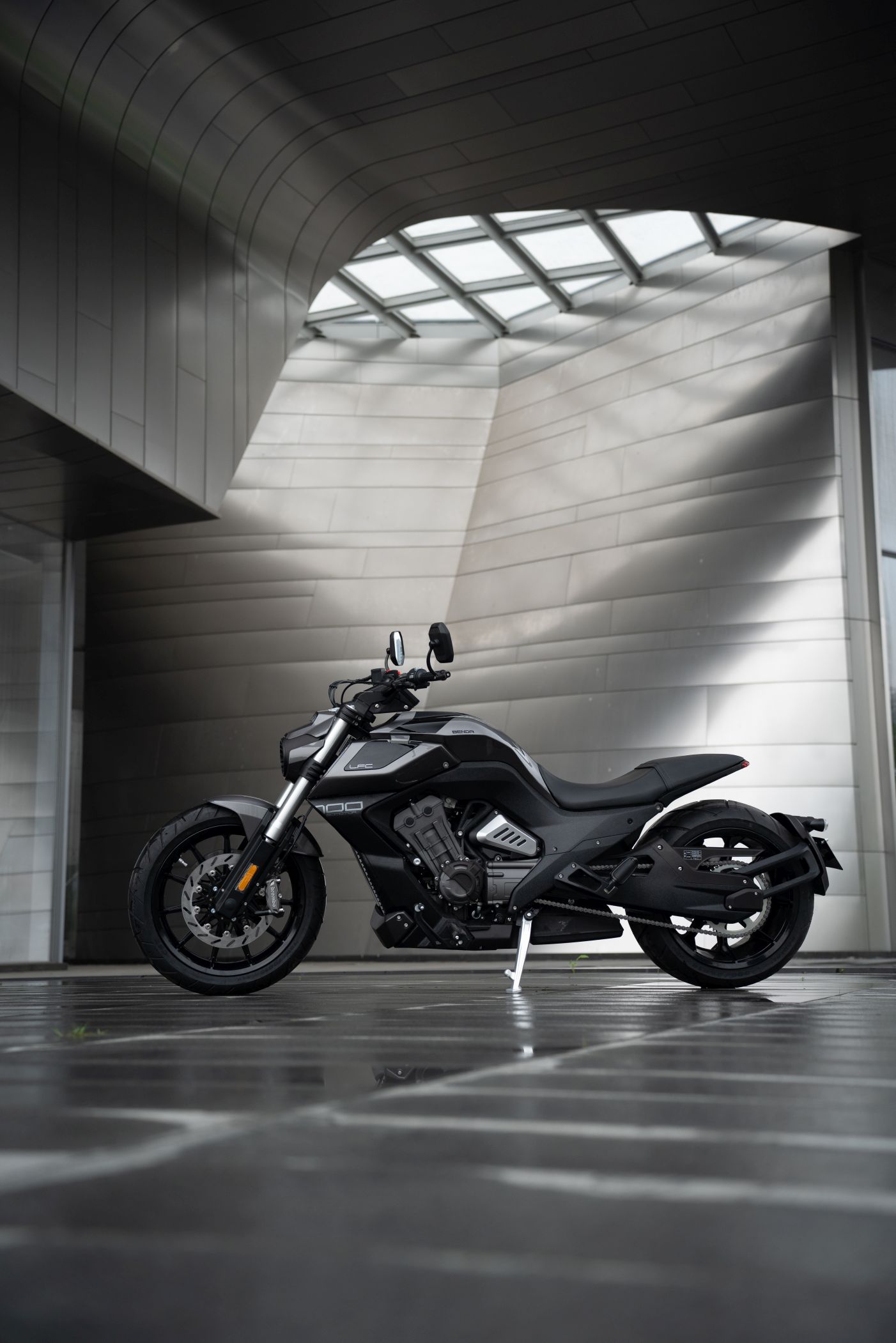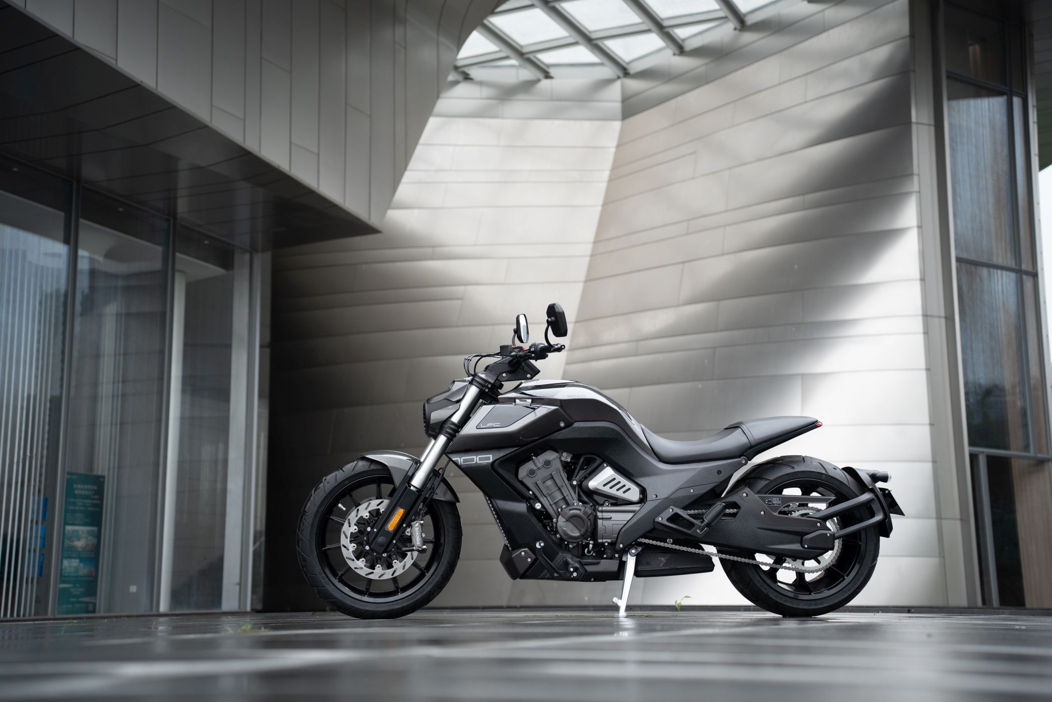 Die Benda LFC 700 pro ist ein Eyecatcher ohnegleichen: Ultrafetter 300er Schlappen hinten, und 4-Zylinderpower gepaart mit einer Brembobremsanlage, die sich auch an Sportmotorrädern gut machen würde. Das macht Eindruck und definiert den Powercruiser neu! Im Vergleich zur „normalen“ LFC kommt die Pro-Variante mit höhenverstellbarem Luftfahrwerk hinten und dem 300er Hinterradreifen. Außerdem ist der Kühler größer, der Auspuff leicht geändert und die berühmten Zusatzscheinwerfer sind zwar verbaut, jedoch nicht funktionsfähig.