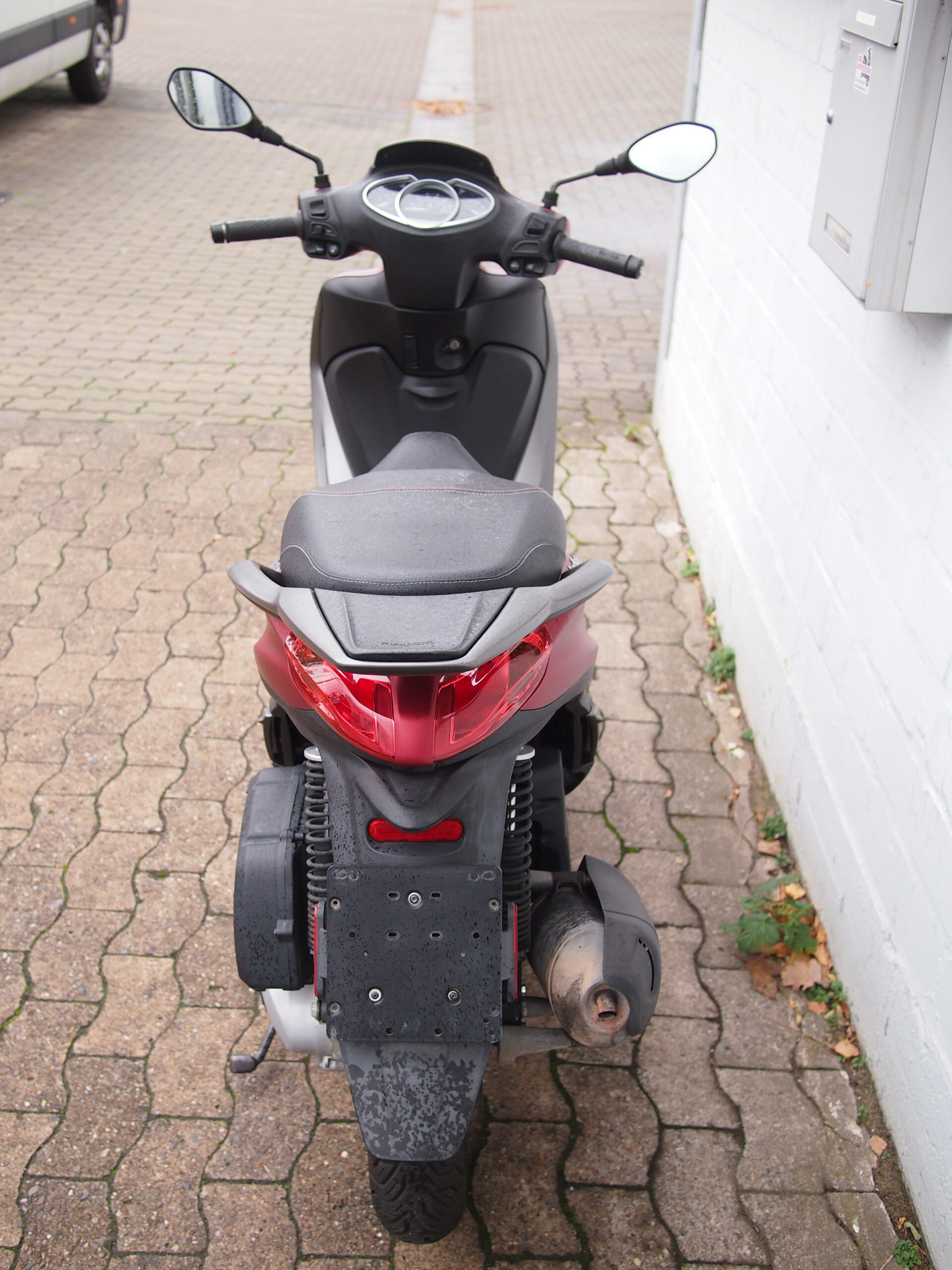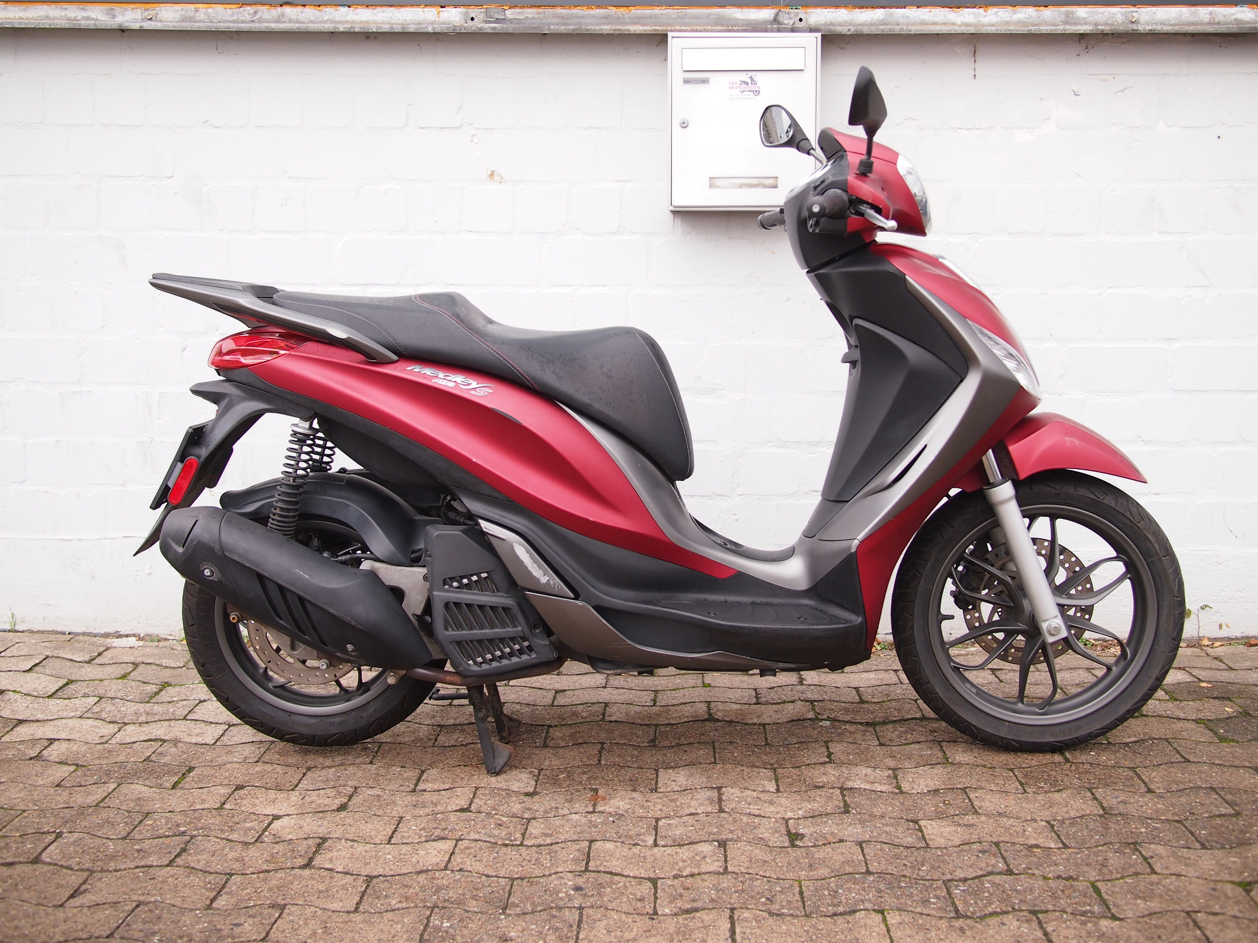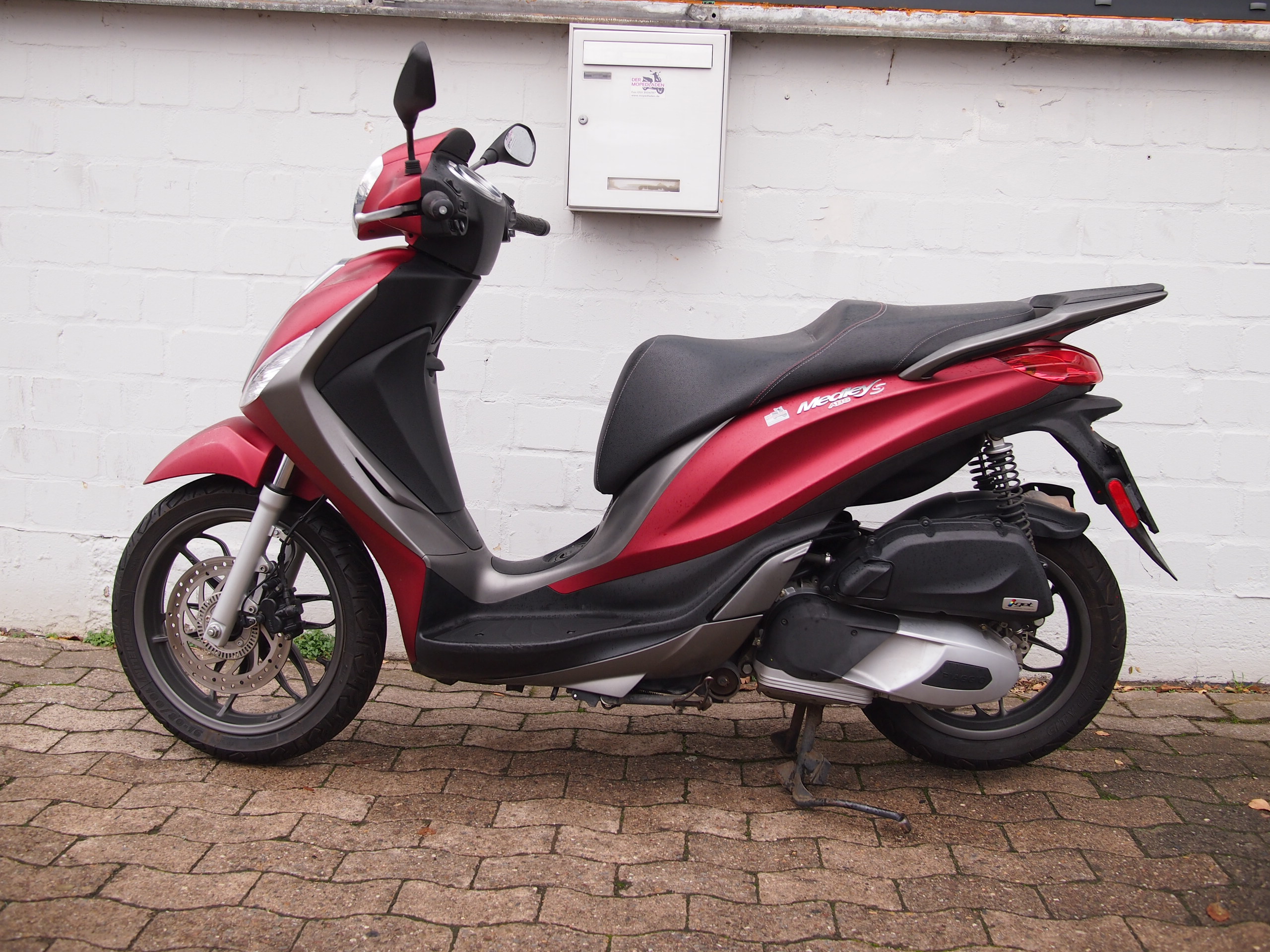 Unser Piaggio Medley 150 ist aus erster Hand, wurde regelmäßig gewartet und hat bei uns grad nochmal eine komplette Inspektion bekommen. Auch der Reifen hinten wurde erst vor 1500km erneuert. Der Medley bietet ein sehr großes Staufach unter der Sitzbank und ist trotzdem noch kompakt und leicht genug um in der Stadt flott durchzukommen. Der Roller hat diverse Kratzer durch einen Sturzschaden auf der rechten Seite (s. Bilder)