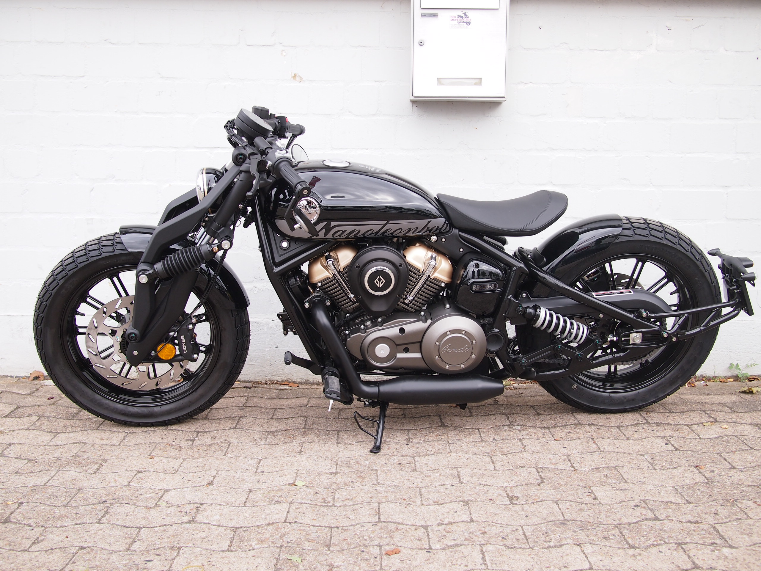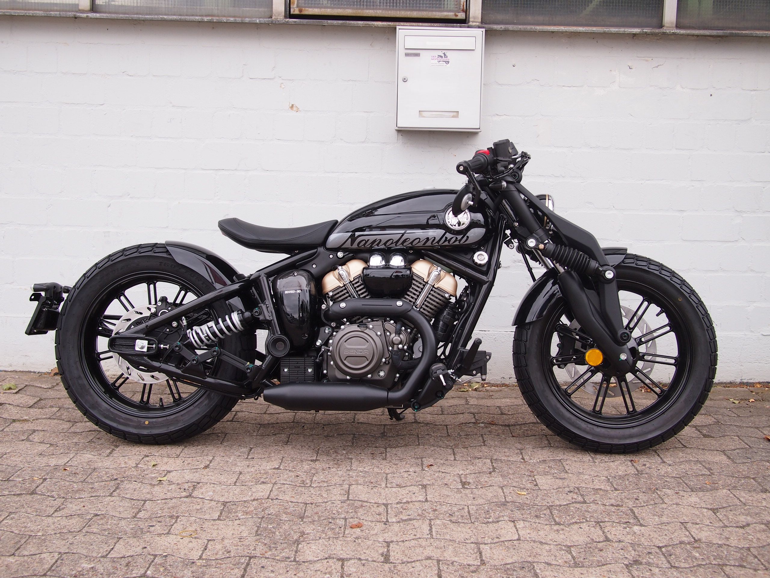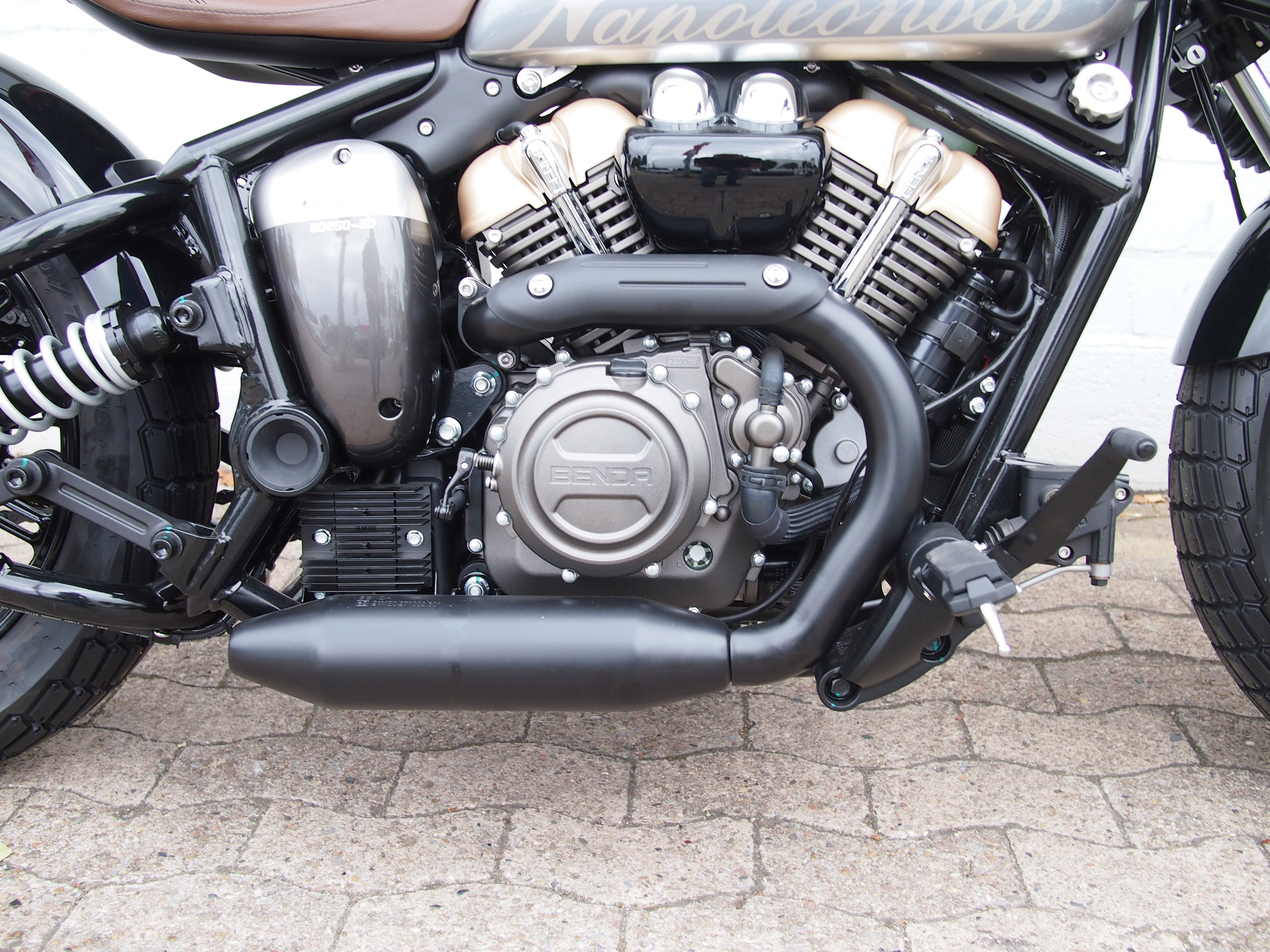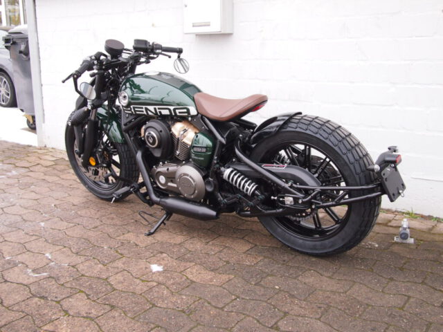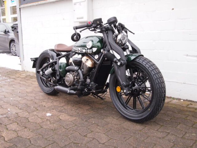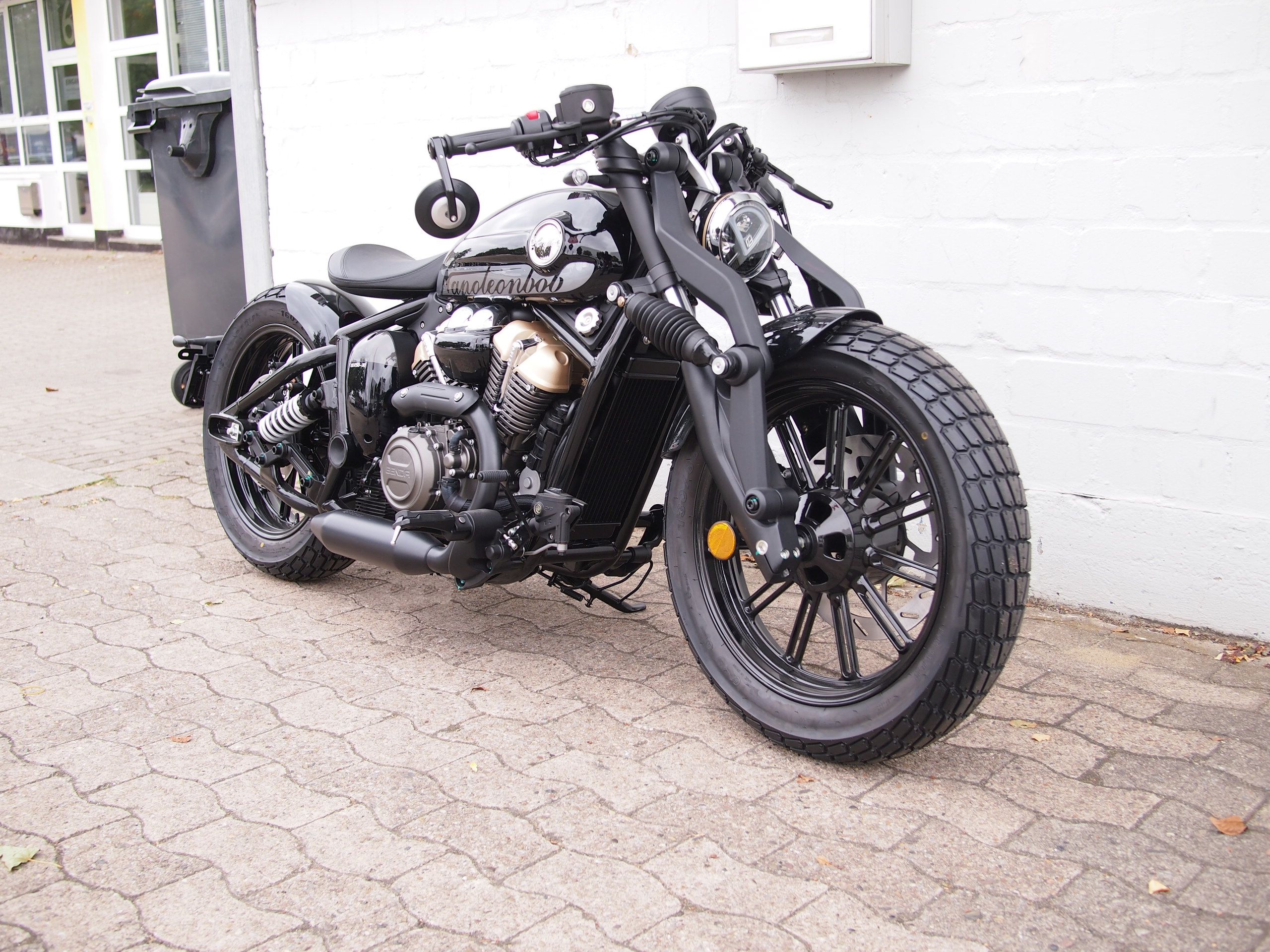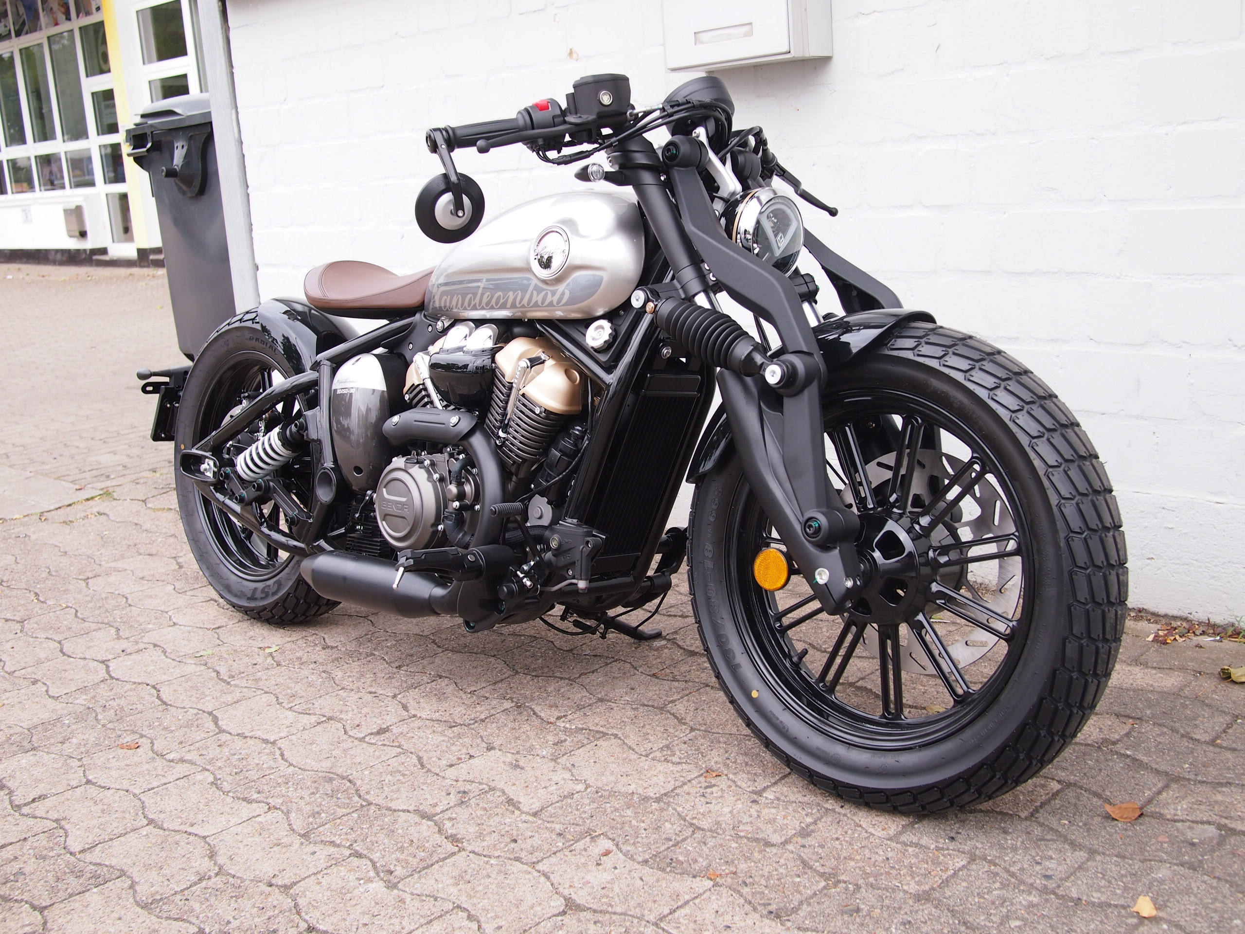 Die Benda Napoleon Bob 125 besticht mit einem Design, dass man so radikal auf der Straße noch nicht gesehen hat. Auf diesem Motorrad sind einem alle Blicke sicher. Jedes Detail ist hier liebevoll herausgearbeitet und auch der klassische V2-Motor passt perfekt zu diesem Unikat. Die 125er ist baugleich mit der bereits bekannten Napoleon Bob 250 und ist auch die erste 125er von Benda mit ABS!