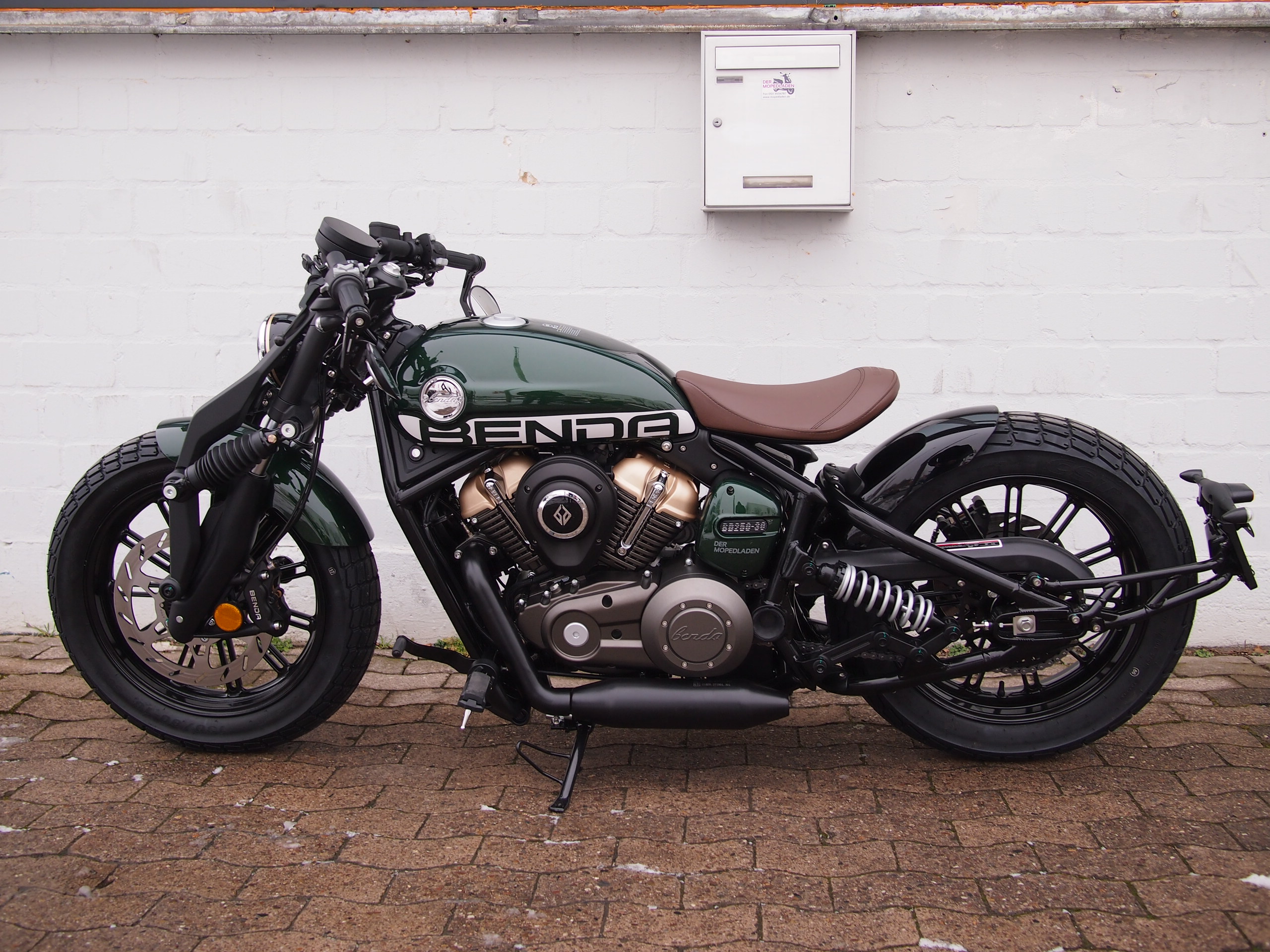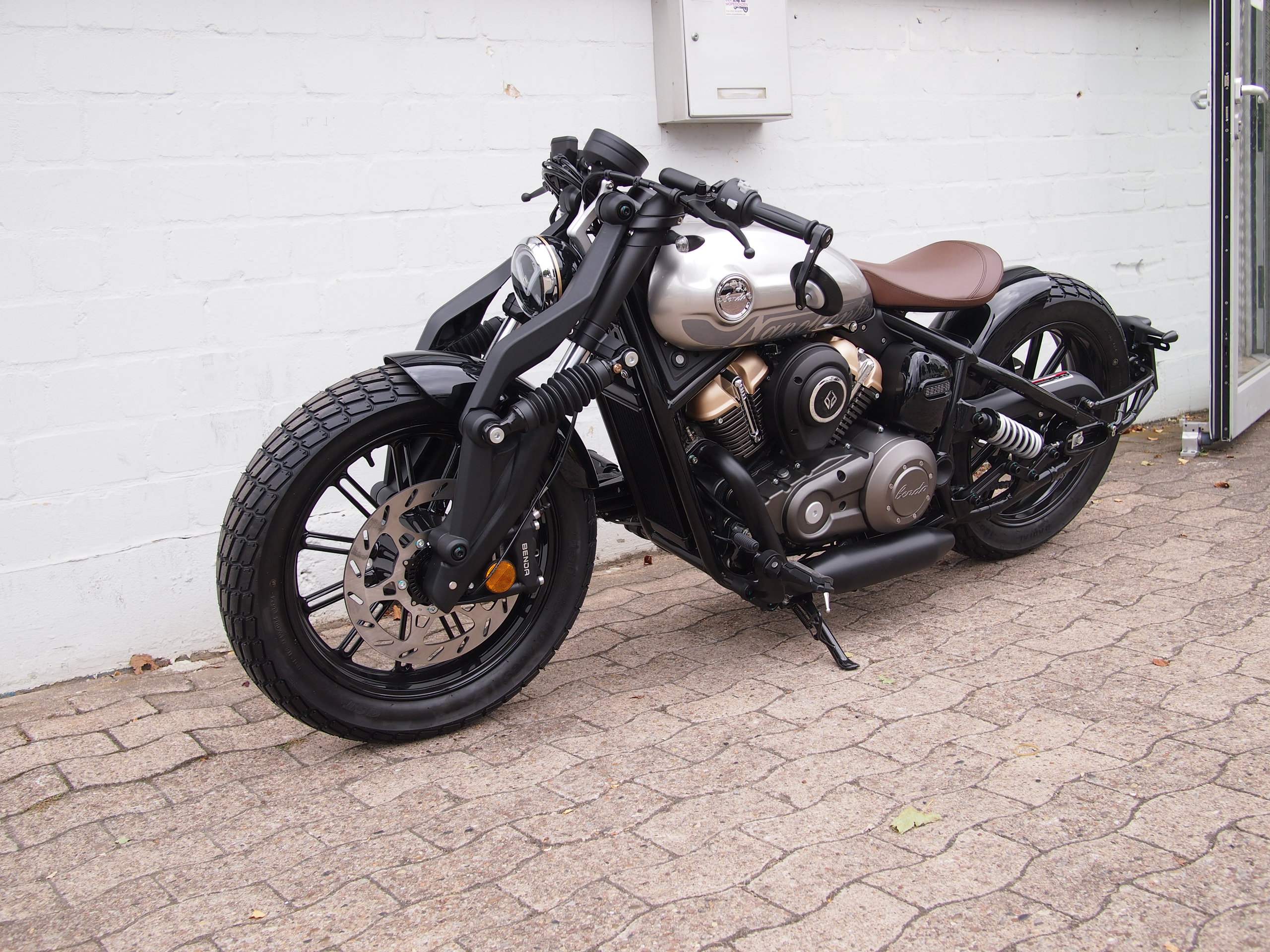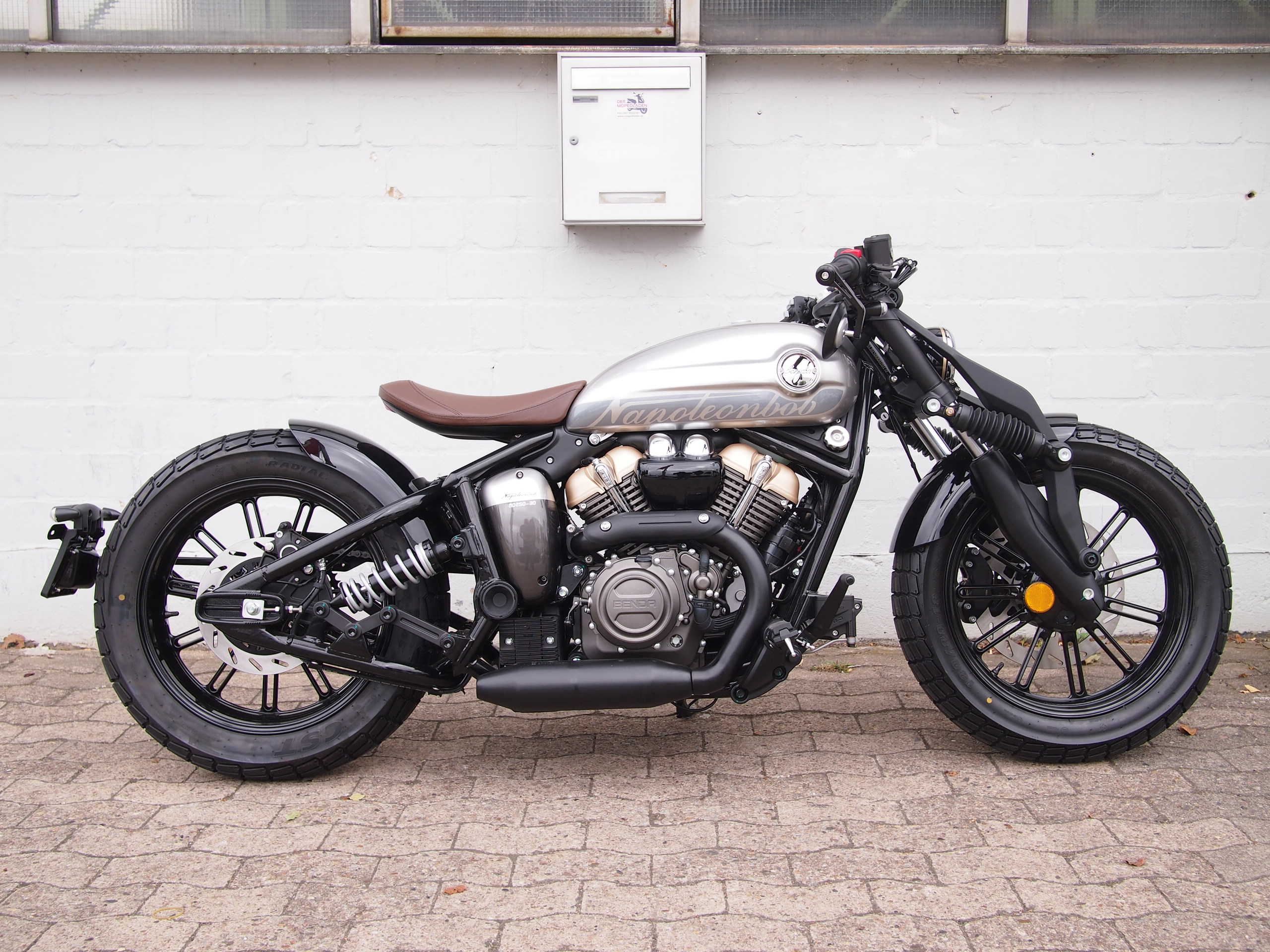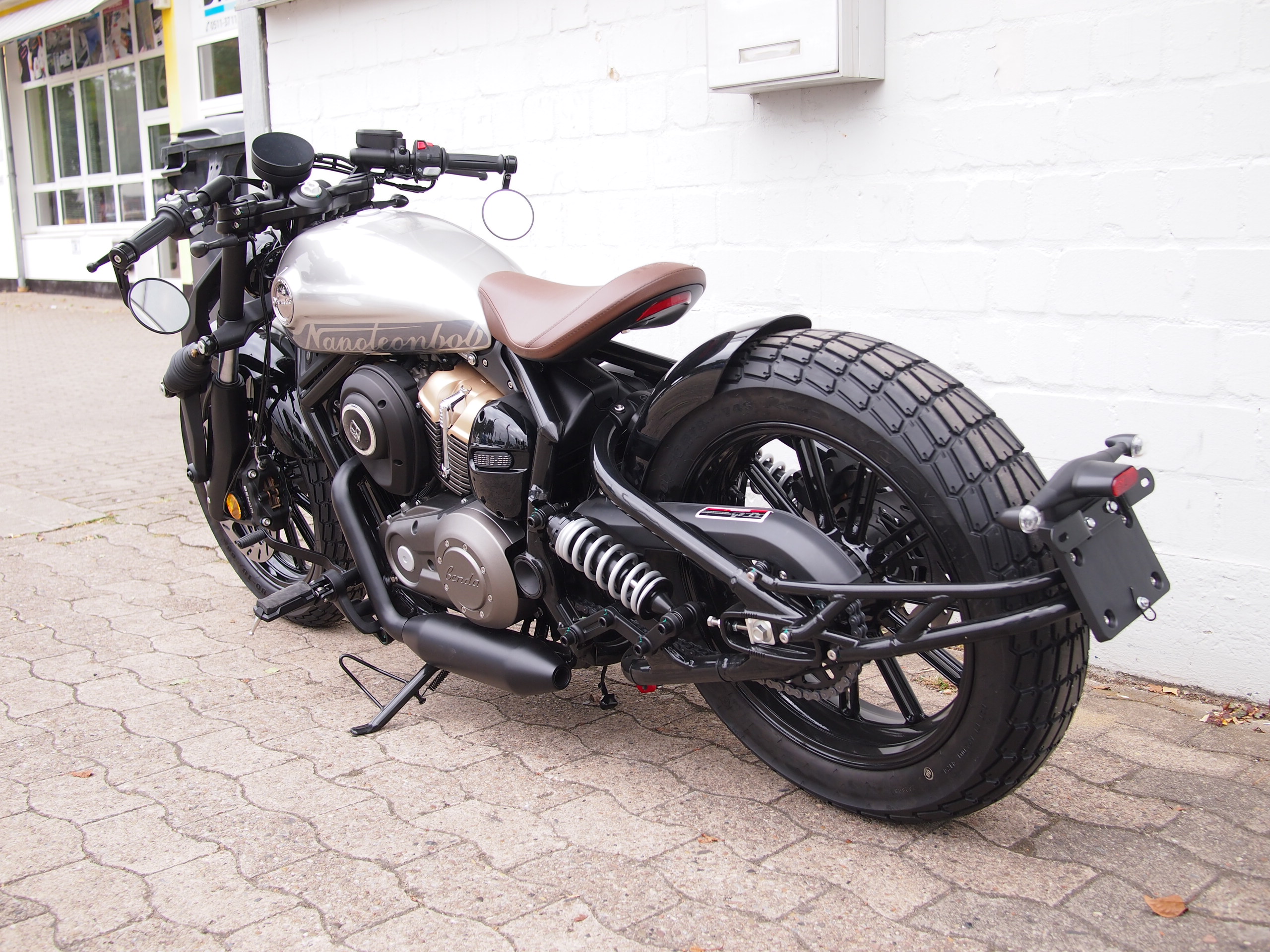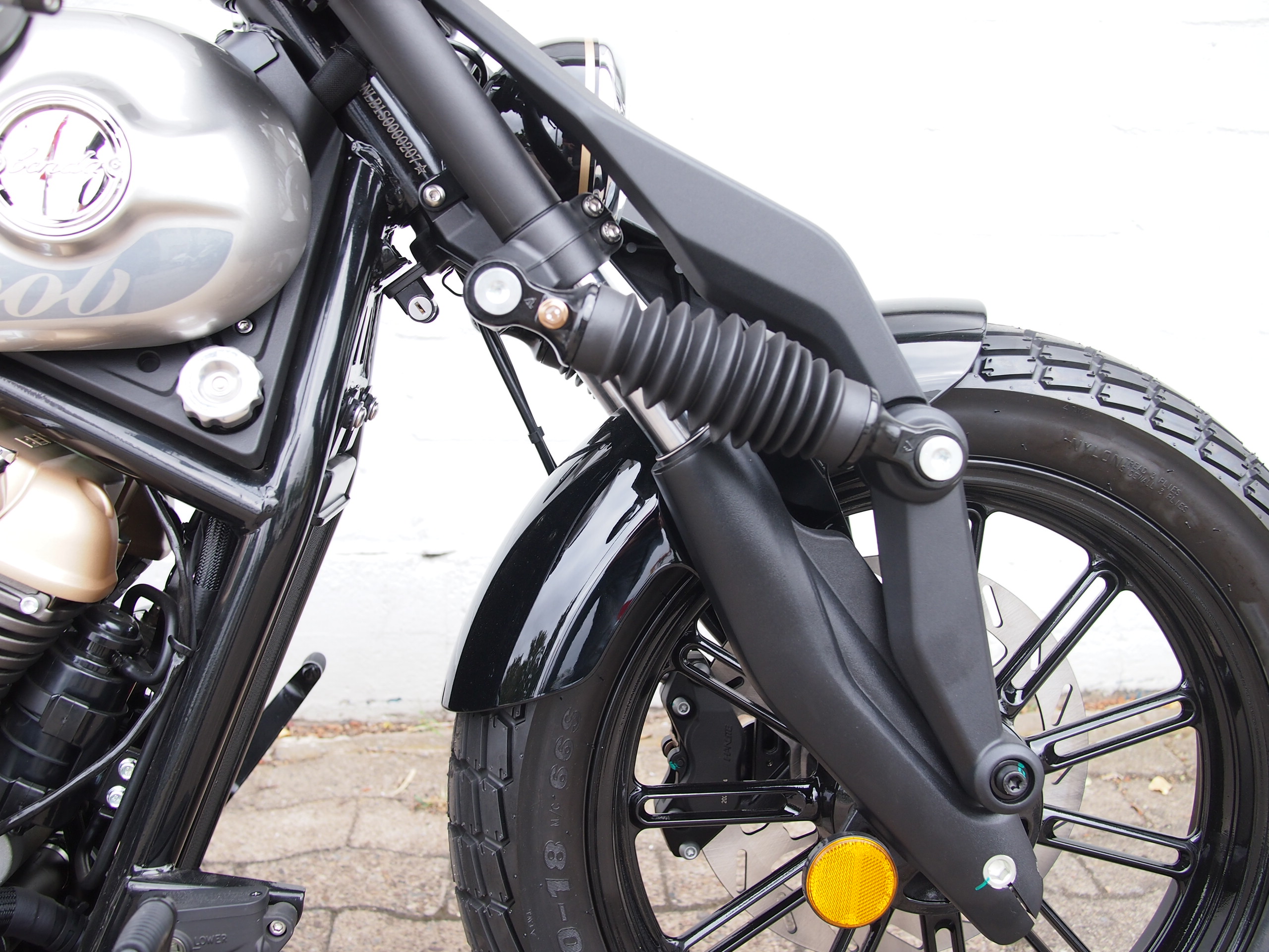 Die Benda Napoleon Bob 125 besticht mit einem Design, dass man so radikal auf der Straße noch nicht gesehen hat. Auf diesem Motorrad sind einem alle Blicke sicher. Jedes Detail ist hier liebevoll herausgearbeitet und auch der klassische V2-Motor passt perfekt zu diesem Unikat. Die 125er ist baugleich mit der bereits bekannten Napoleon Bob 250 und ist auch die erste 125er von Benda mit ABS!