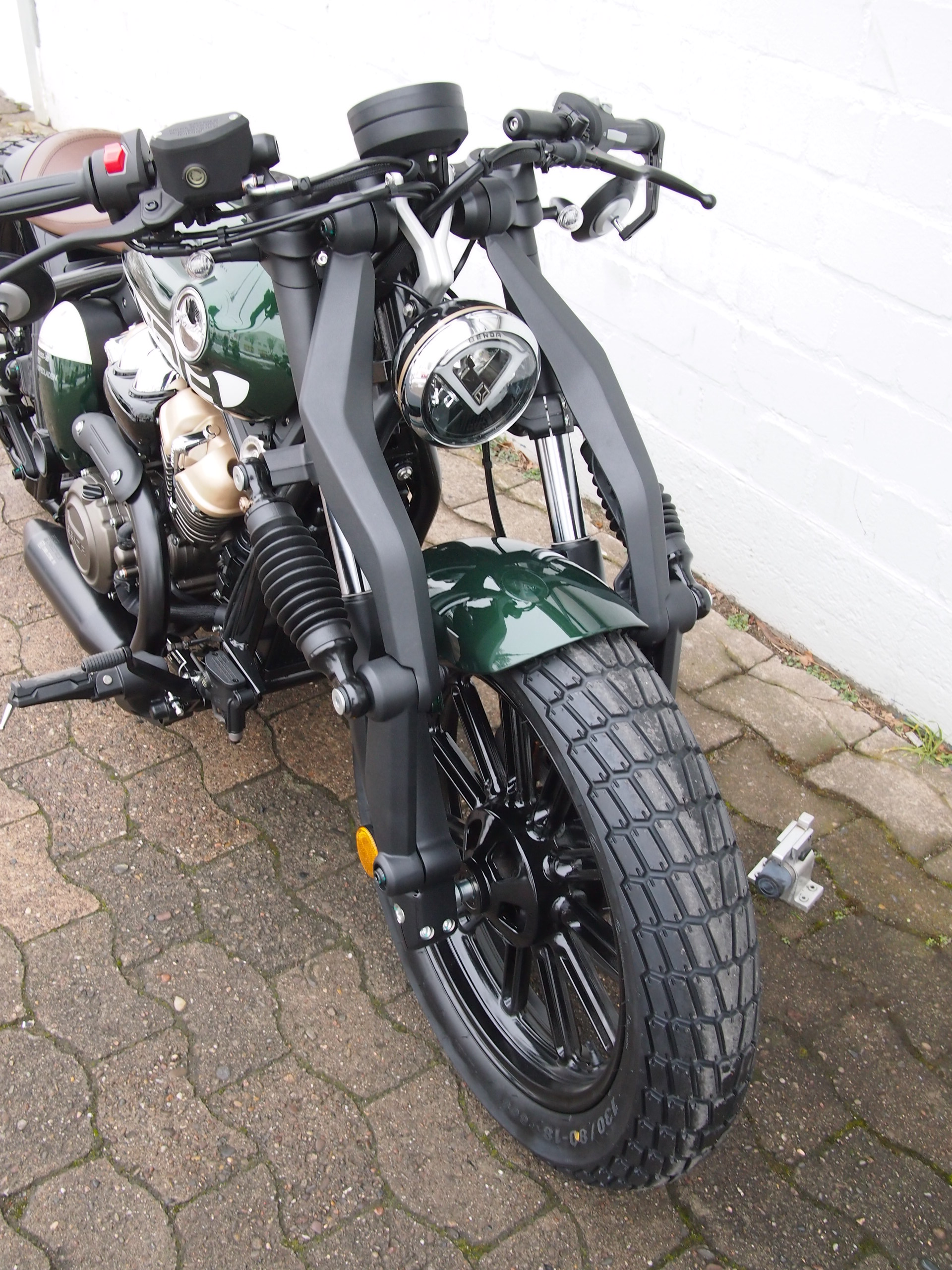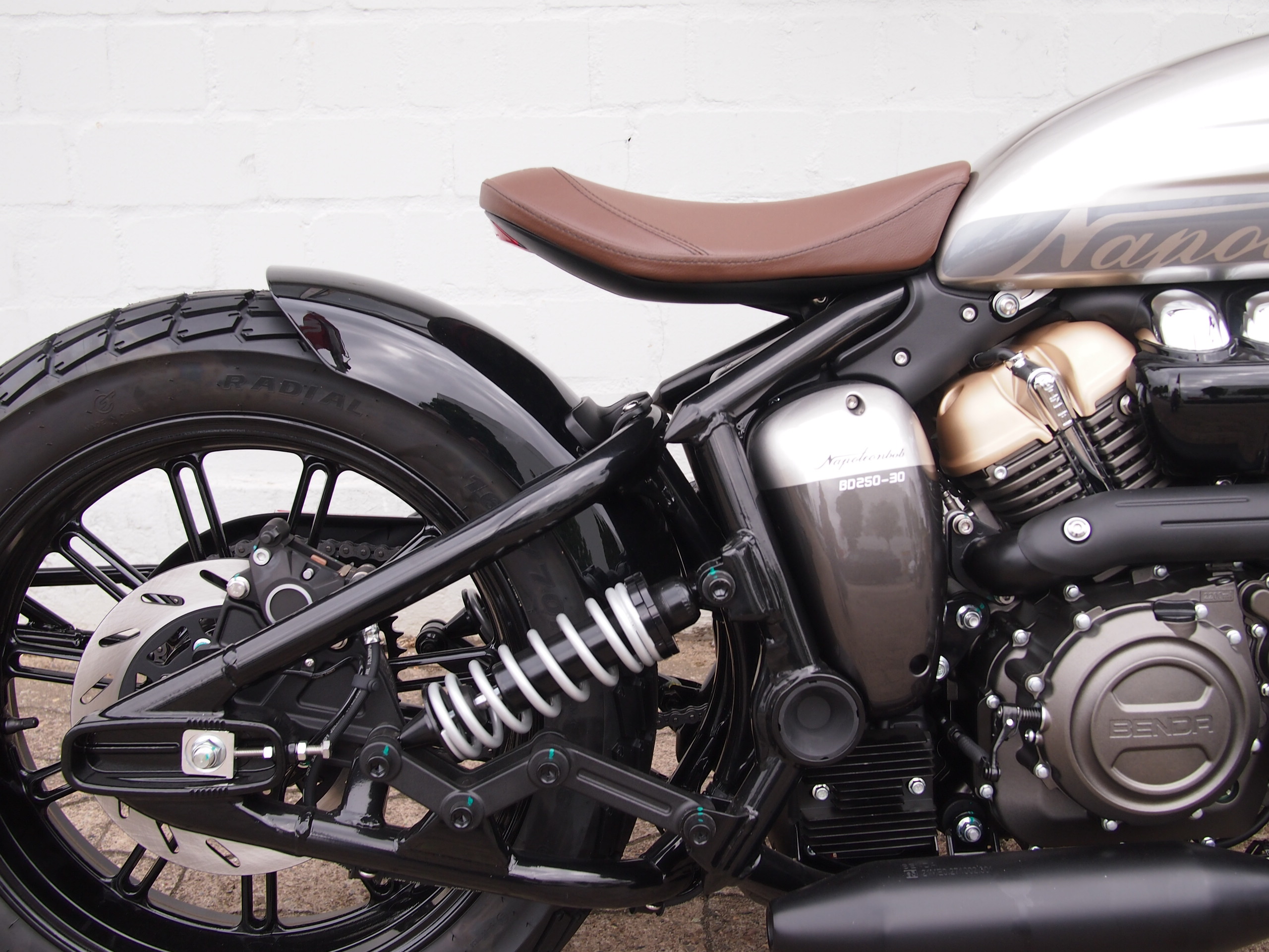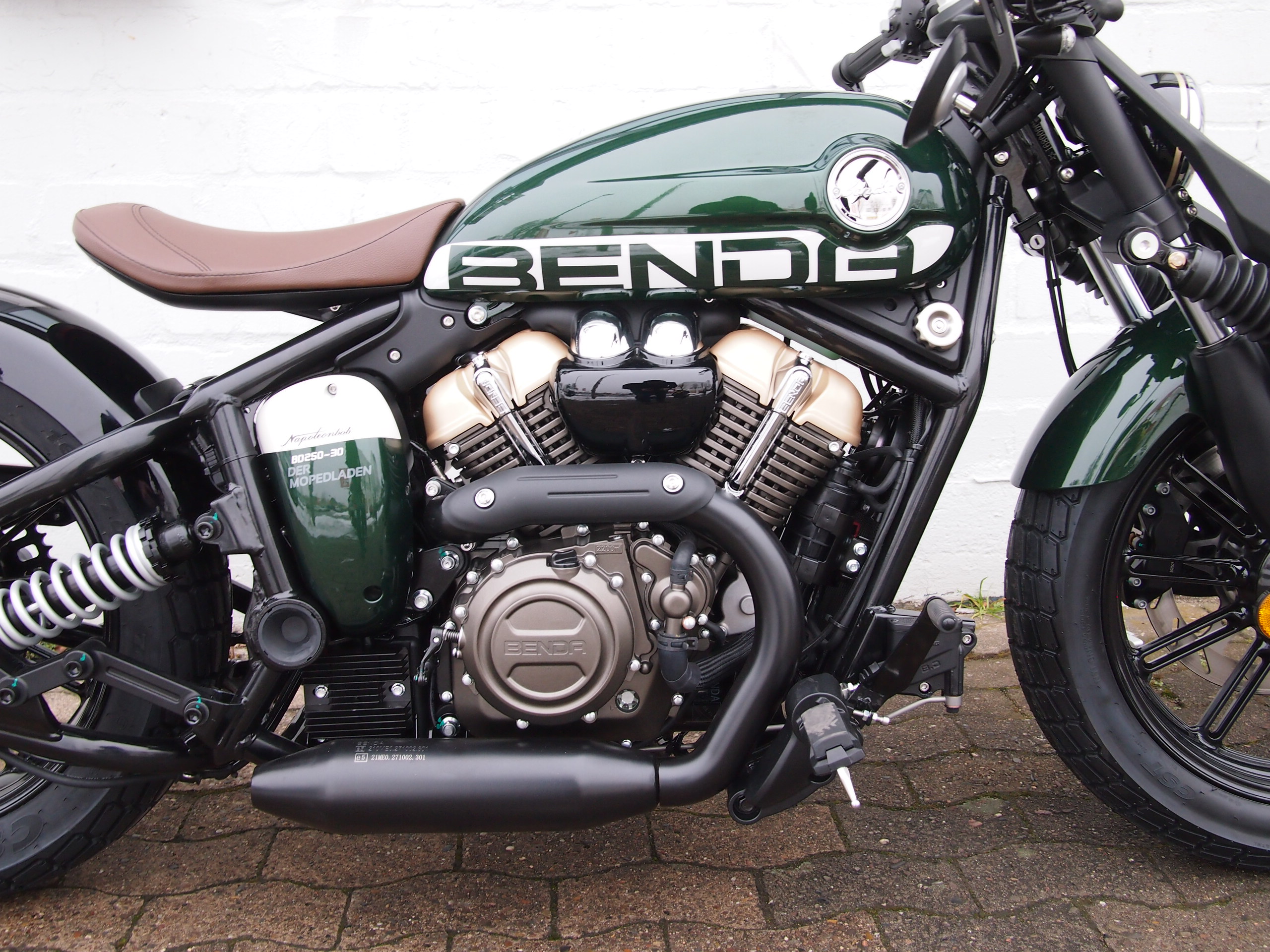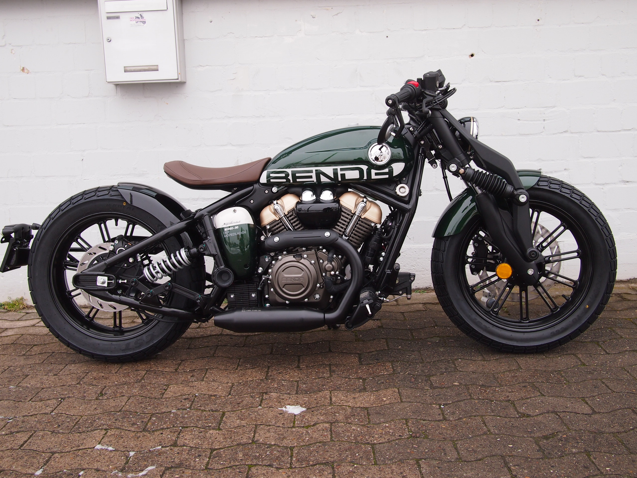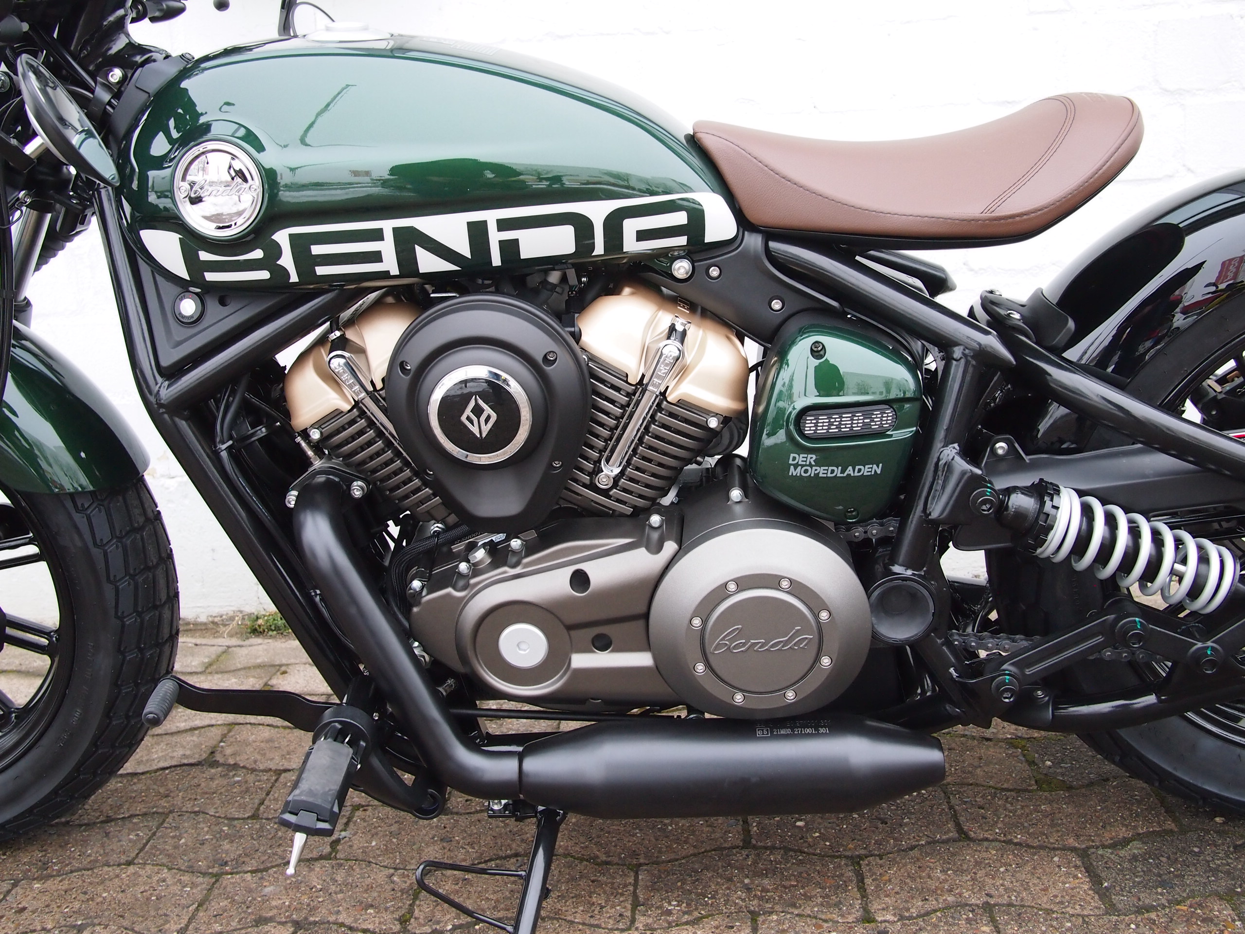 Die Benda Napoleon Bob 125 besticht mit einem Design, dass man so radikal auf der Straße noch nicht gesehen hat. Auf diesem Motorrad sind einem alle Blicke sicher. Jedes Detail ist hier liebevoll herausgearbeitet und auch der klassische V2-Motor passt perfekt zu diesem Unikat. Die 125er ist baugleich mit der bereits bekannten Napoleon Bob 250 und ist auch die erste 125er von Benda mit ABS!